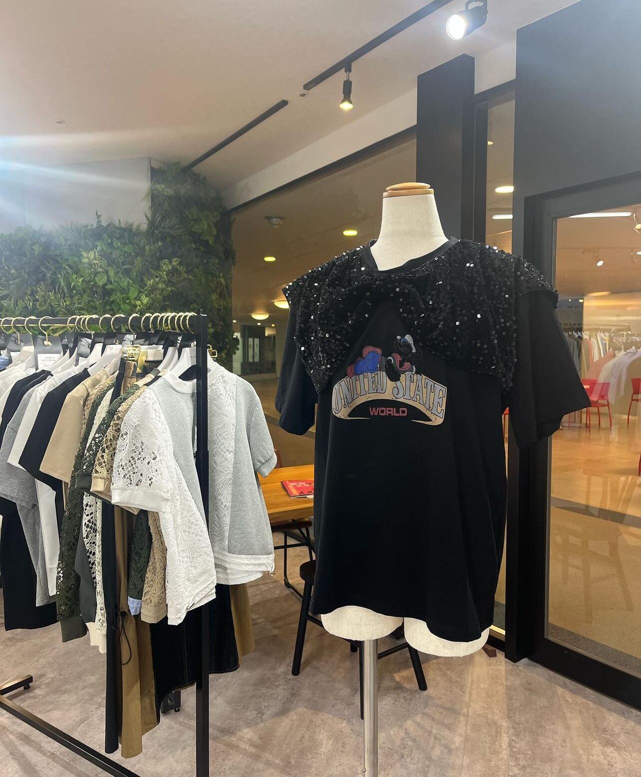 予約販売【 MICALLE MICALLE 】sequins ribbon T (MMB111TCA )4月上旬お届け