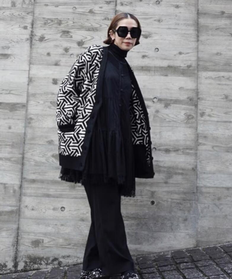 タートルに、パンツ、上にジャケットだとなんだか物足りない、と感じた時や、ヒップや腰回りがあらわになるフィット感のあるお洋服だと気になってしまう時に重ねると便利かな?と思い、重ねる前提でデザインをしました。通常Mサイズを着用の方であれば入ると思いますが、見た目ほど細くはない作りです。アームホールもゆったりですが、厚手のニットなどは入らないので、薄手のニットやインナーで合わせてみてください。お胸がある方は、ご自分のストレッチのない小さめのお洋服を測ってみてサイズ確認する事をお勧めします。