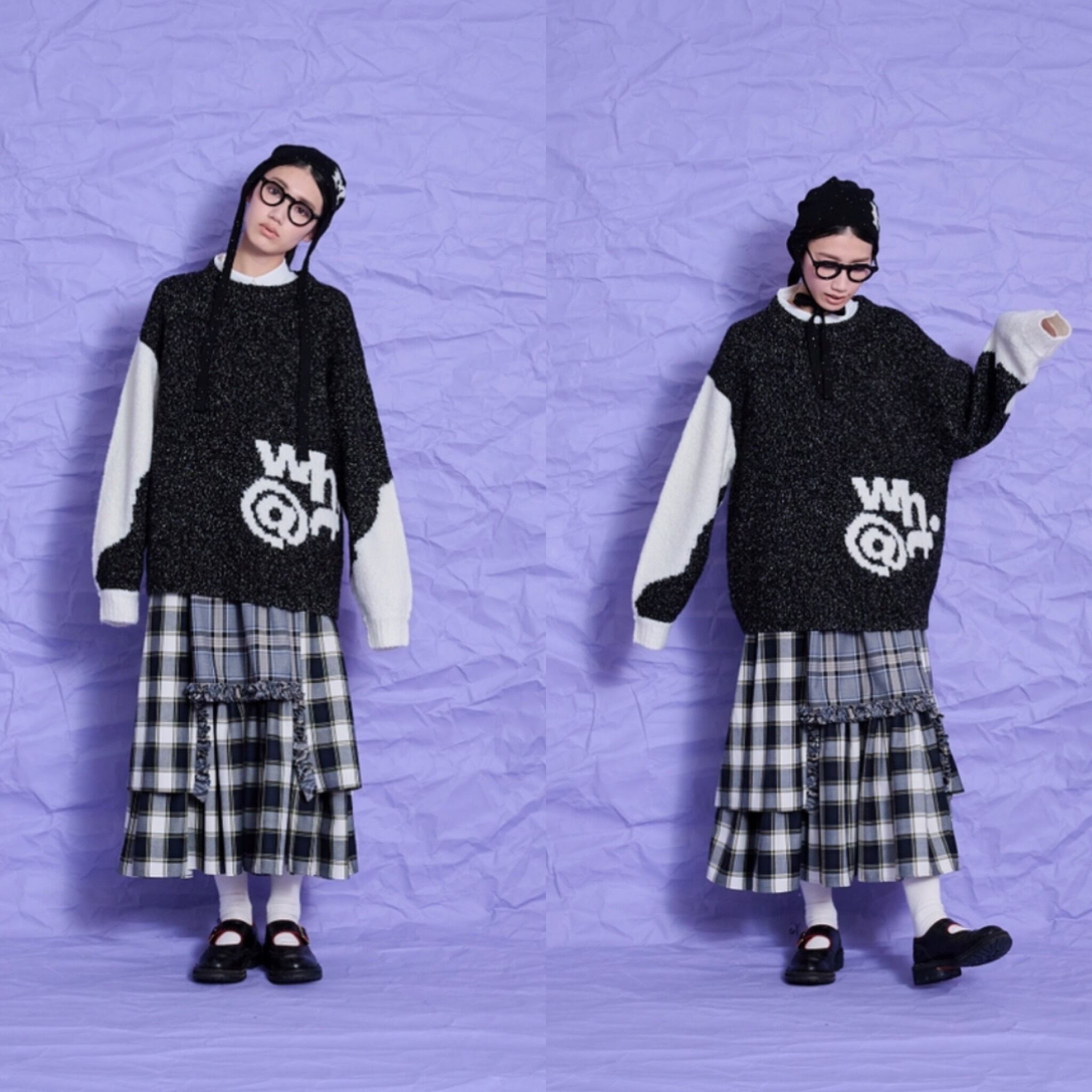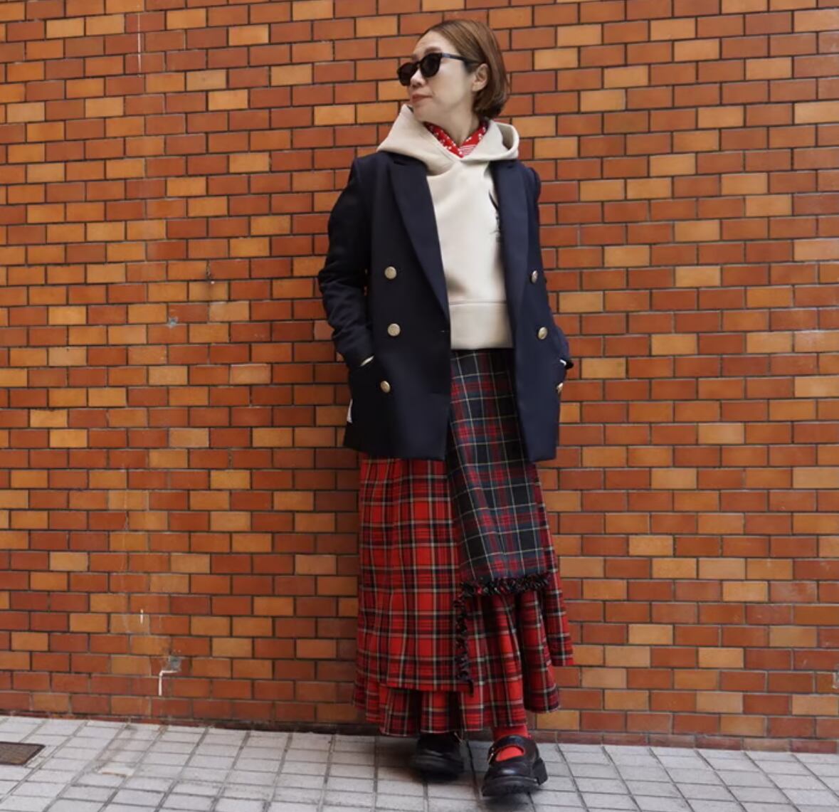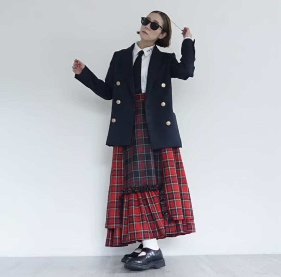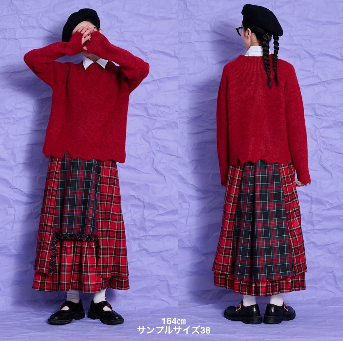 少し技巧的なデザインのスカートです。スカートのデザインバリエーションはとても難しくていつも唸りながら絞り出して、なんとなくヒット、と自分では思っていますが、今回はとても気に入りました。オリジナル感が非常に高い2枚重ね、2つのタータンチェックを重ね合わせて作りました。