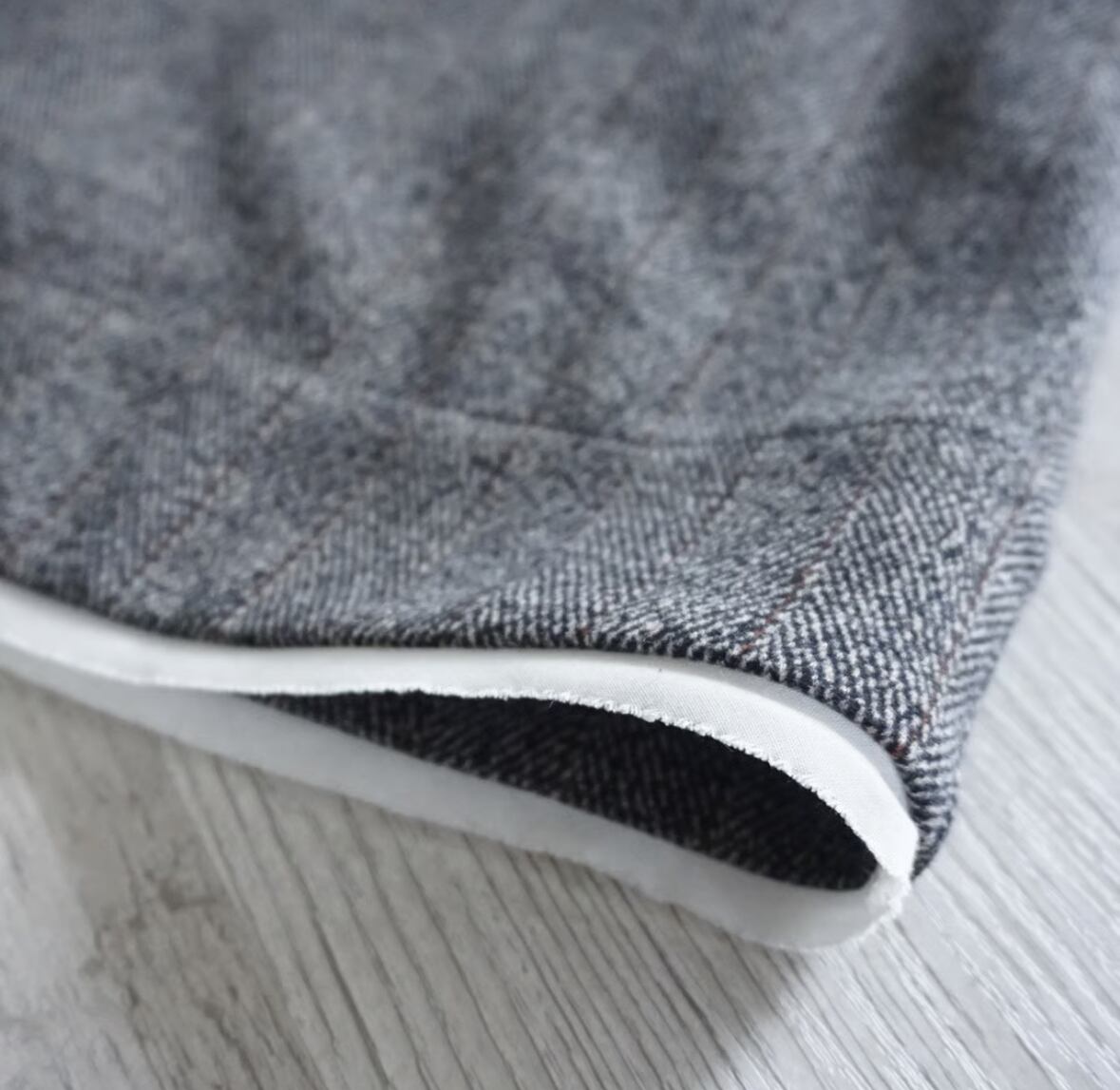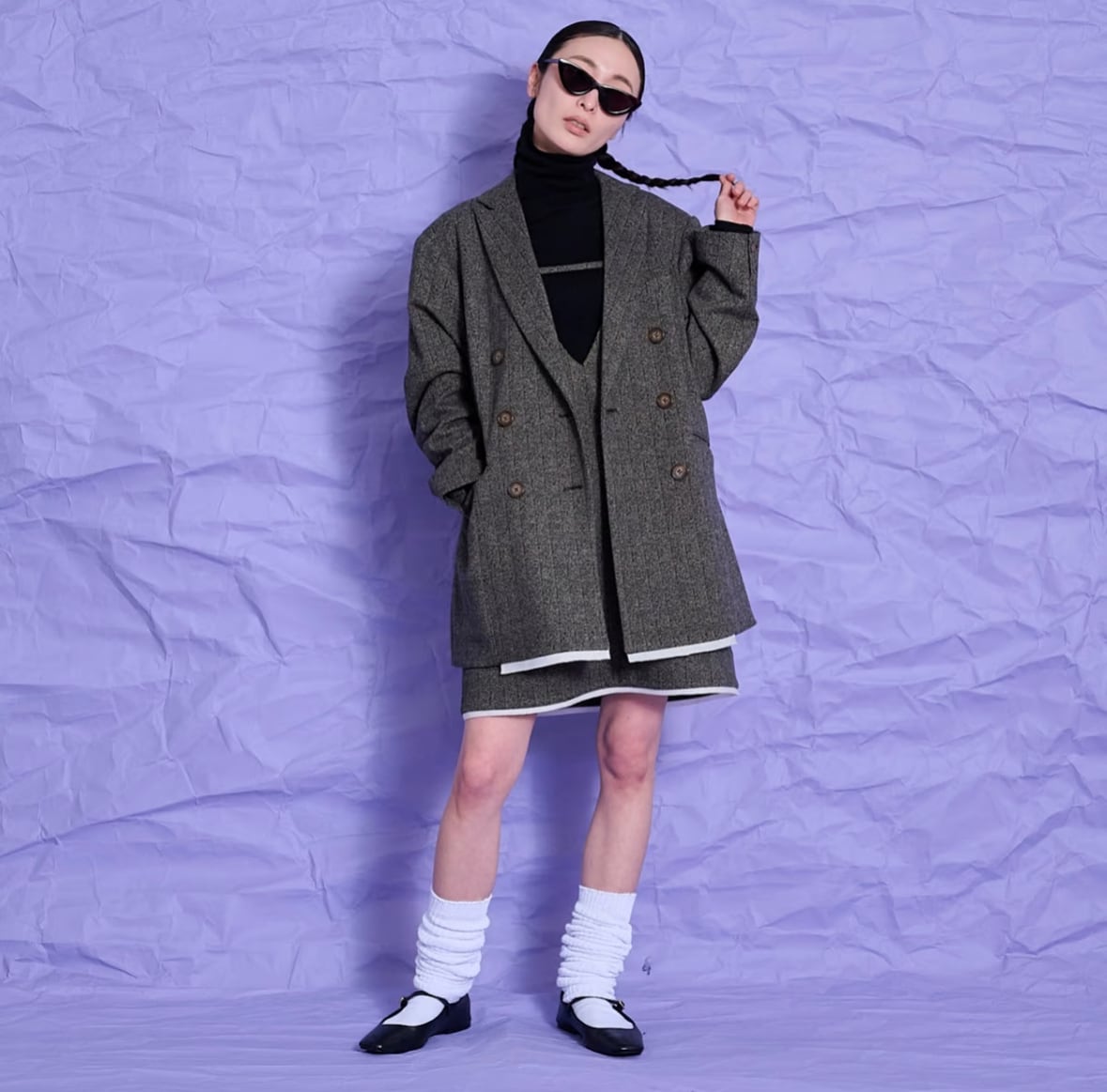 色々なバリエーションでお洋服を楽しんで貰えたら嬉しいです。ジャケットも同じ素材で出しています。重ねてもバランスが合うように着丈のバランスを考えました。