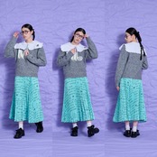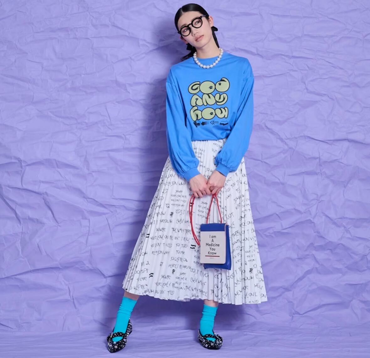 オリジナルプリントは、以前、バッグで出した似たようなデザインが好評だったため今回はスカートでも出してみました。ロゴは新しいグラフィックです。大好きなUKバンドのクーラシェーカーのSHOWER YOUR LOVE という曲の歌詞の一部から取っています。インド音楽とビートルズから影響を受けているバンドで、冒頭の始まりはインド民族音楽調、この曲が当時(2000年代)好きで、歌詞も聴いてさらに好きになったバンドです。
