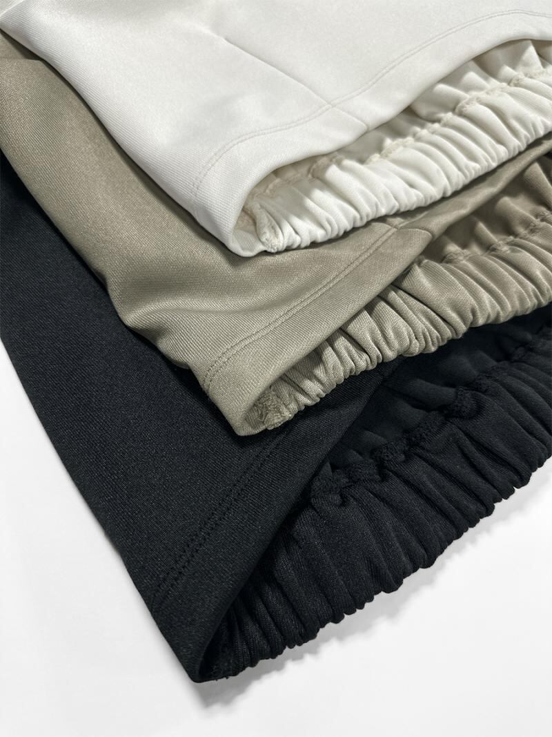 表が光沢とハリのあるポリエステル、裏が肌さわりの良いコットンの、裏表で表情の違うダブルフェイスジャージーは、きれいめとカジュアル感の兼ね合いを楽しめる素材になっています。