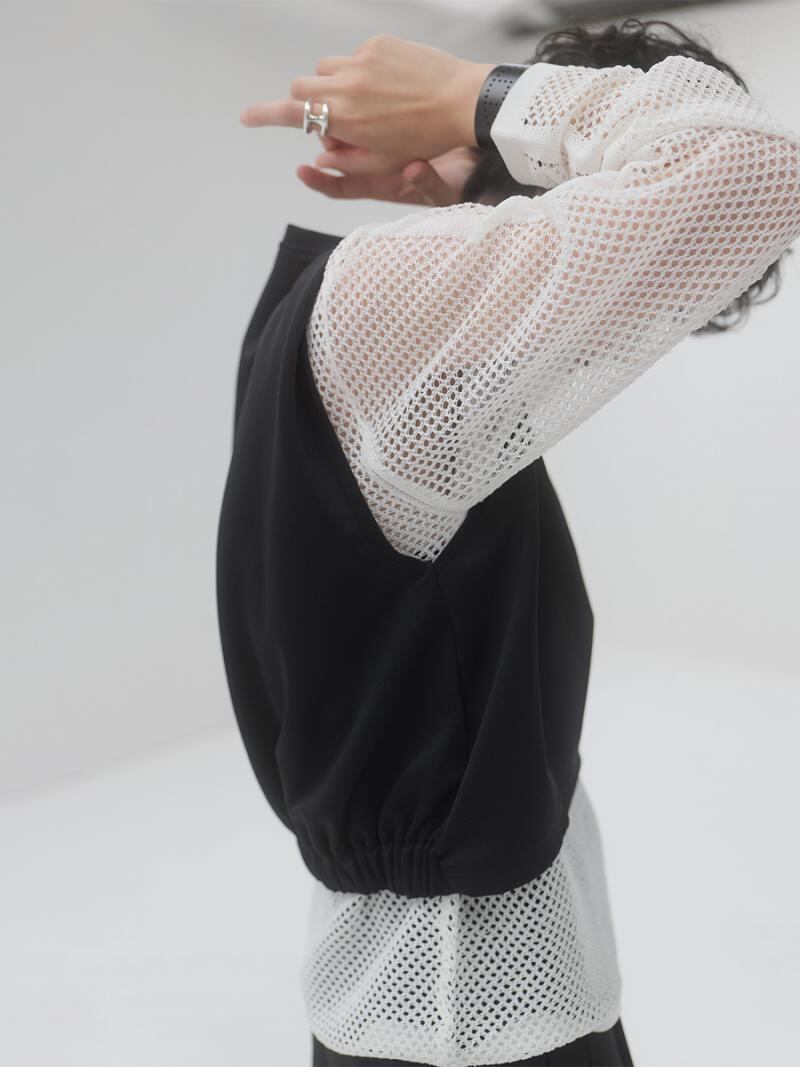 ダブルフェイスのジャージー素材を使用した短丈のトップスです。