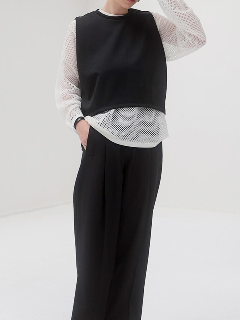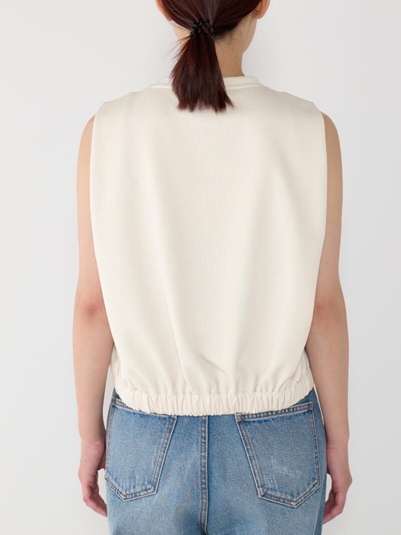トレンド感のある1枚です。夏には1枚でトップスとして、春先には下にインナーをレイヤードしてコンパクトなベストとしての着用もおすすめです。