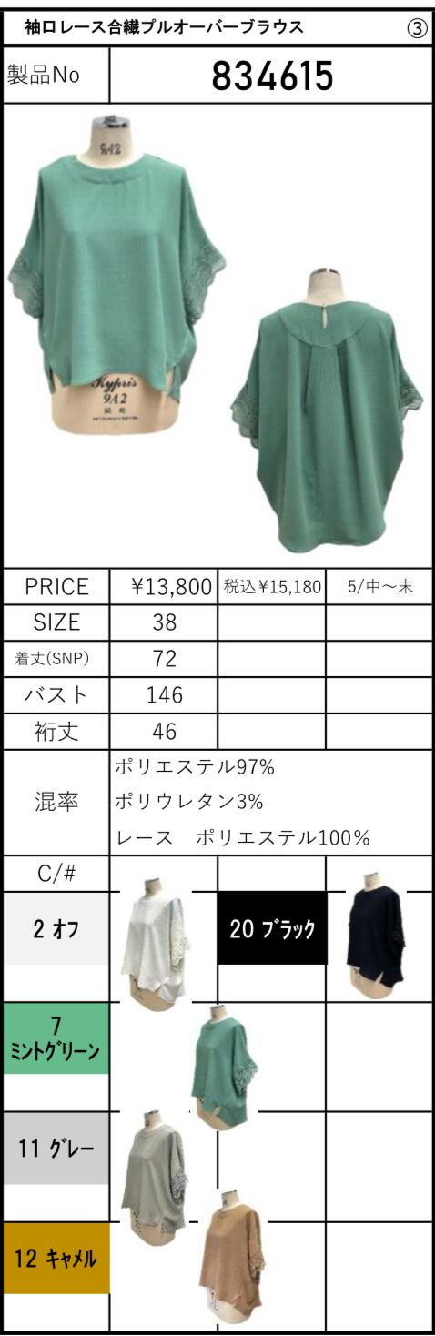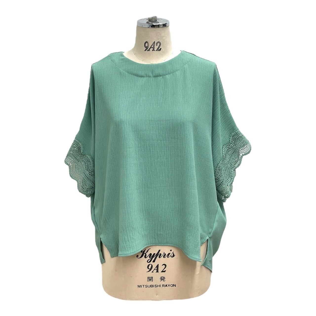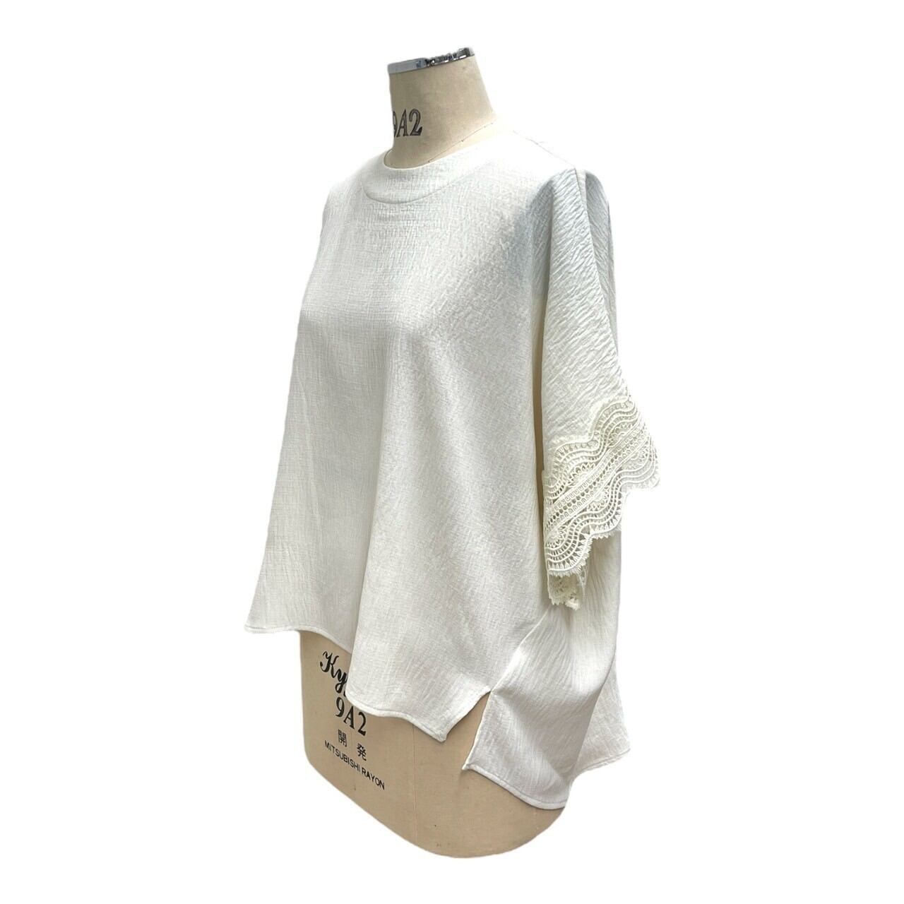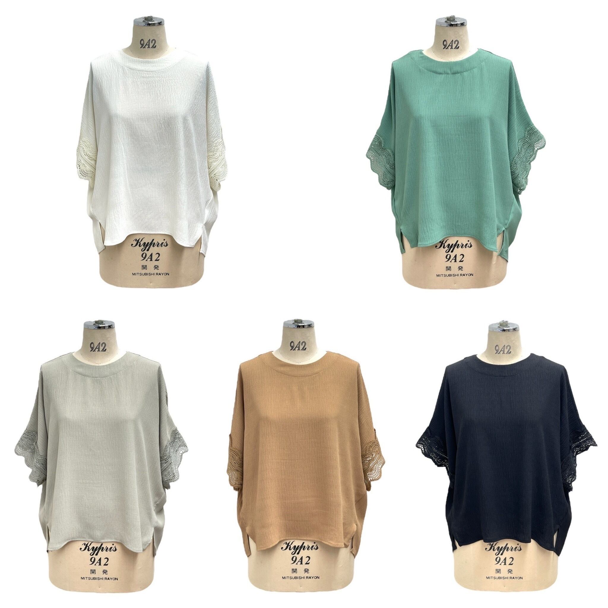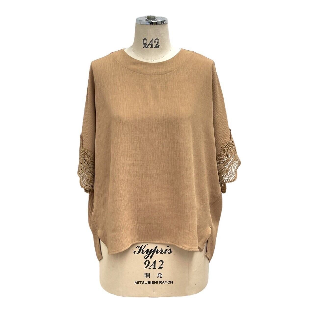 予約販売【 ayane 】袖口レース合繊プルオーバーブラウス(834615)5月下旬お届け