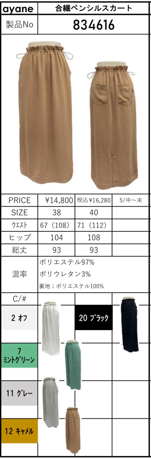 予約販売【 ayane 】合繊ペンシルスカート(834616)5月下旬お届け
