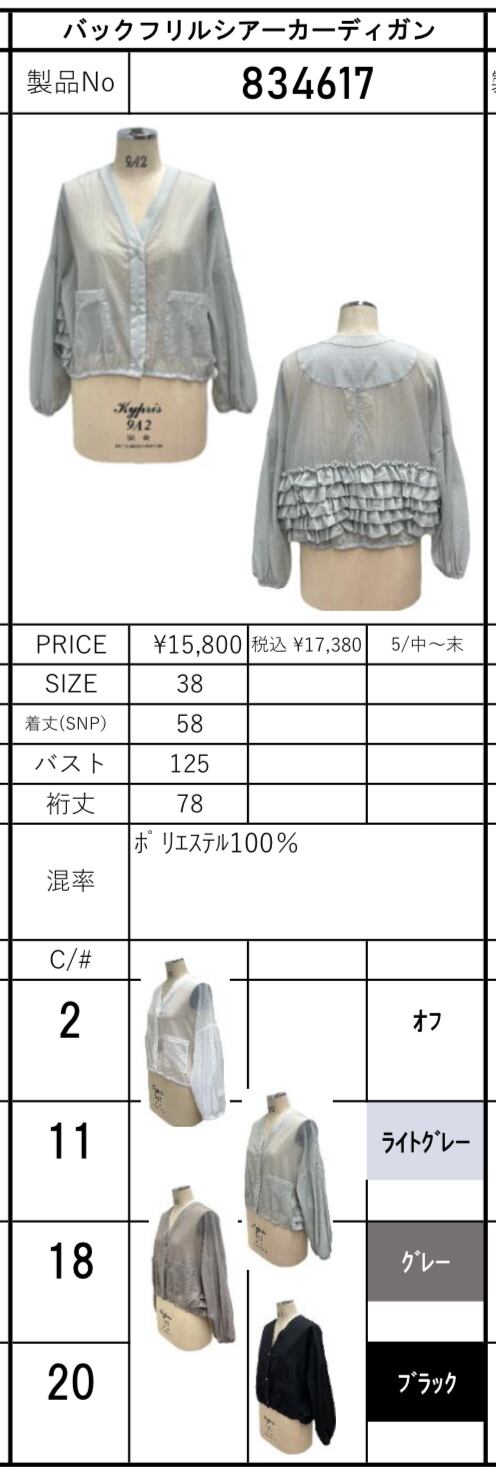 予約販売【 ayane 】バックフリルシアーカーディガン(834617)5月下旬お届け