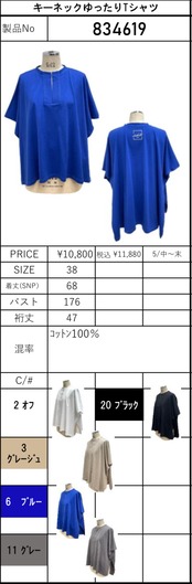 予約販売【 ayane 】キーネックゆったりTシャツ(834619)5月下旬お届け