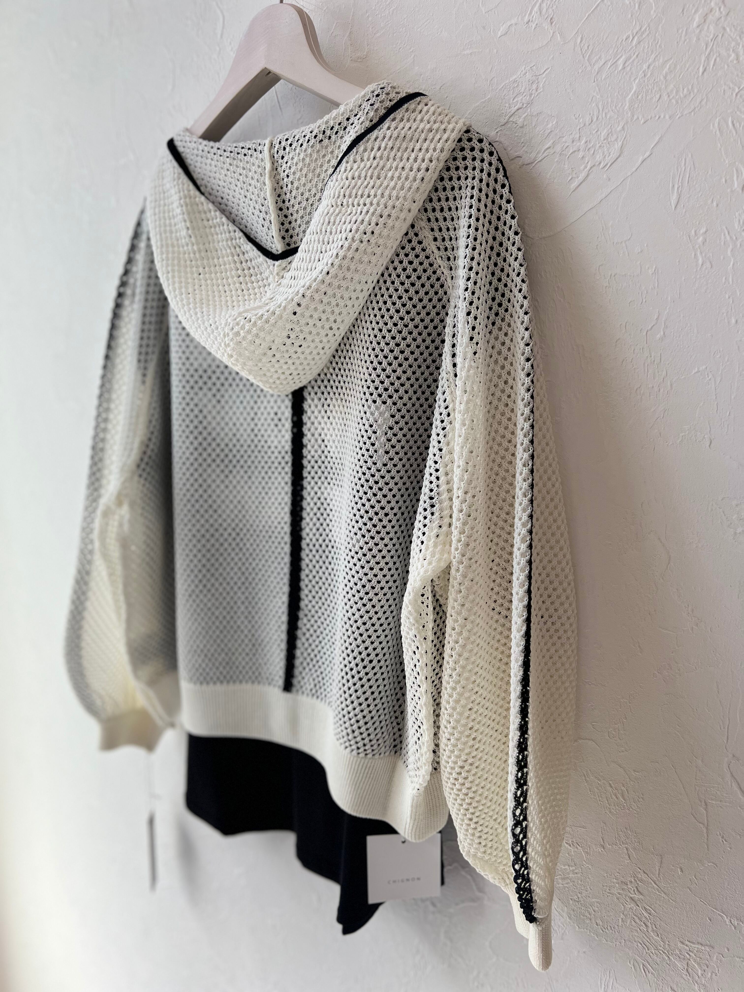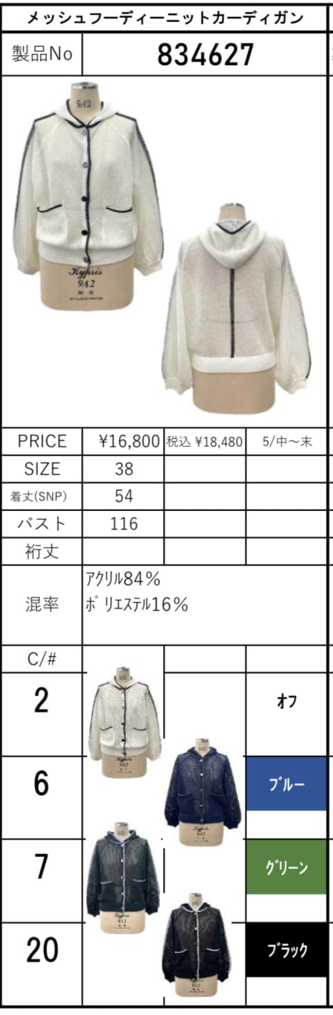 【 ayane 】メッシュフーディーニットカーディガン(834627)