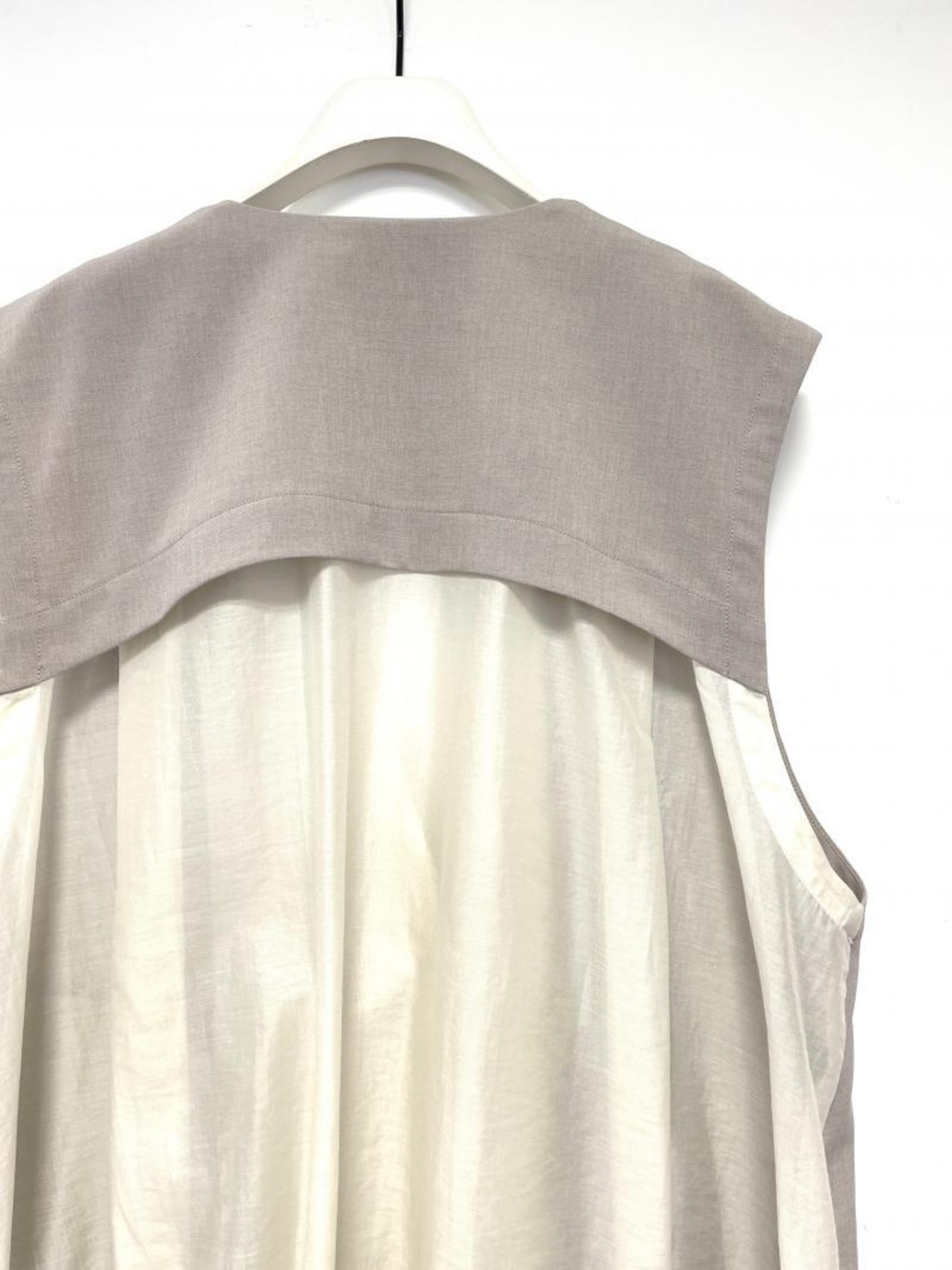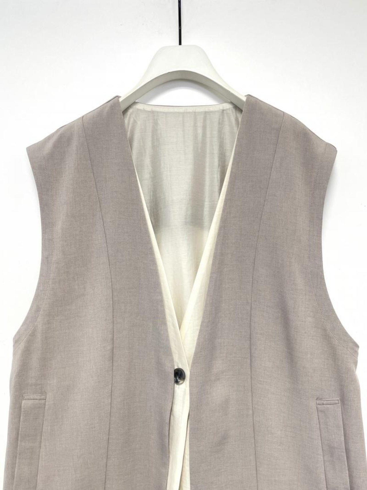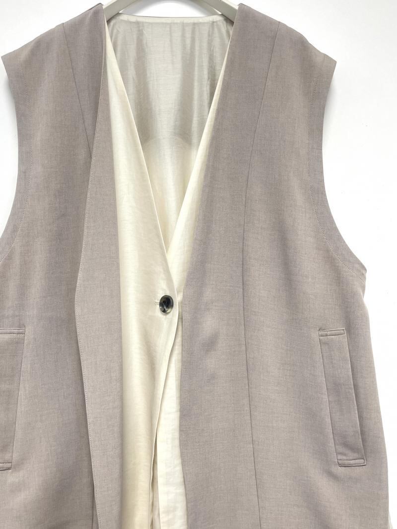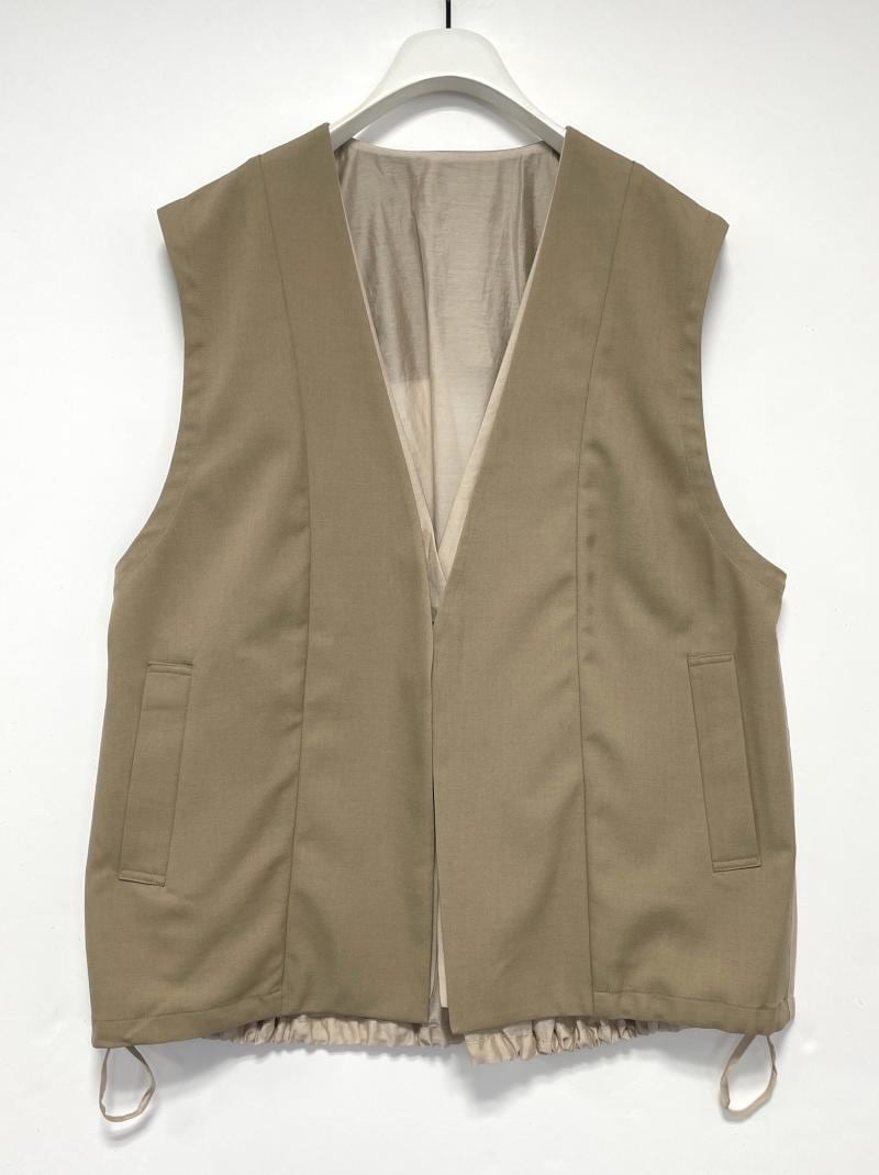 マニッシュな素材とシアーを組み合わせたデザインベストです。