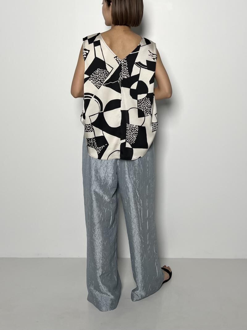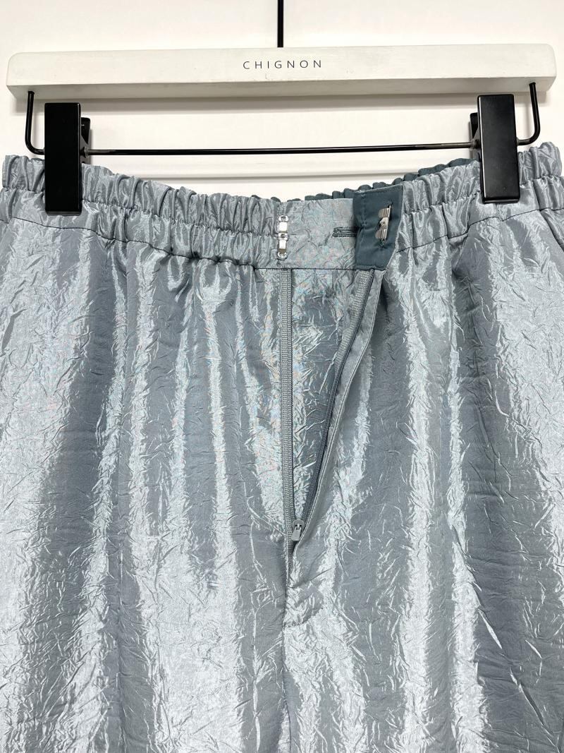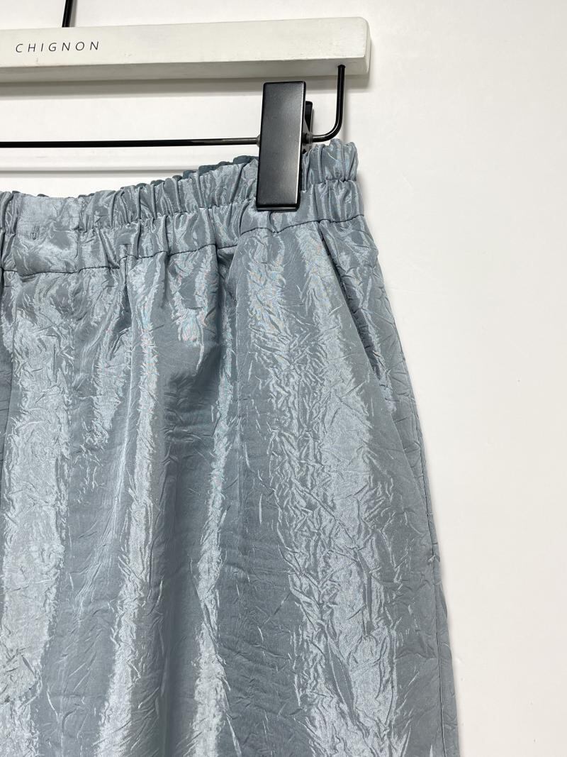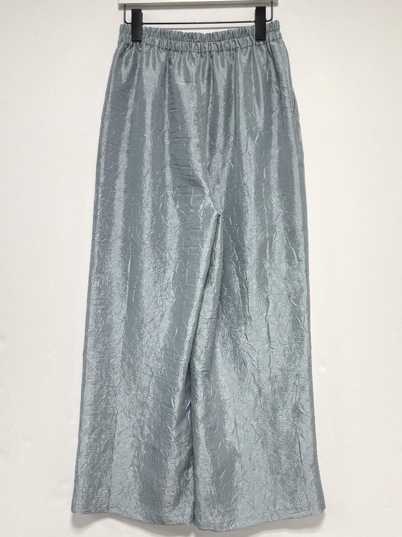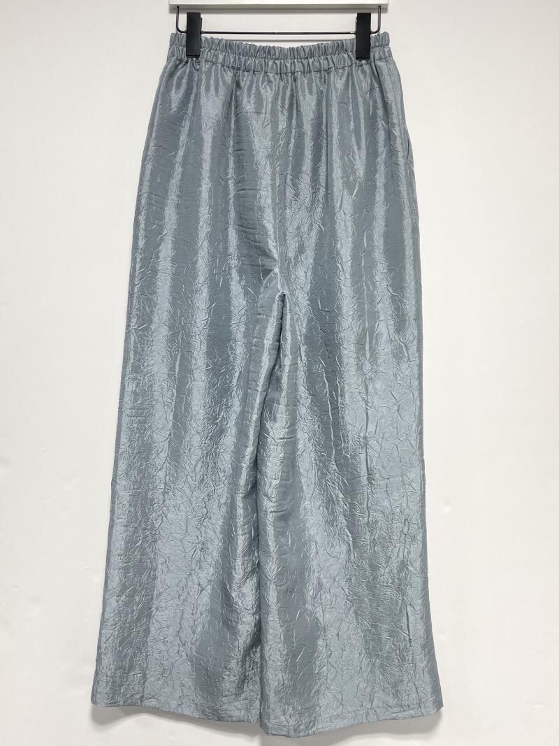 シワ加工と微光沢が特徴的な素材をセレクトしたワイドパンツです。