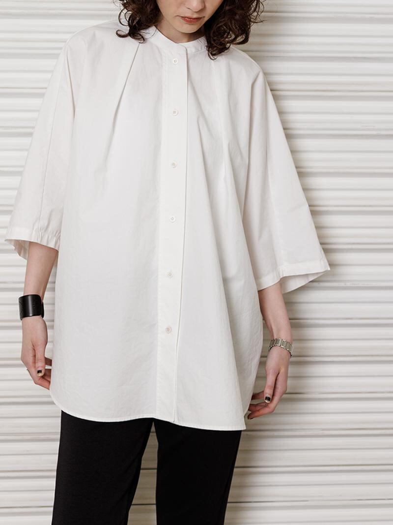 オーバーサイズシルエットで中に着るものを選ばないため、真夏の羽織としてもおすすめです。