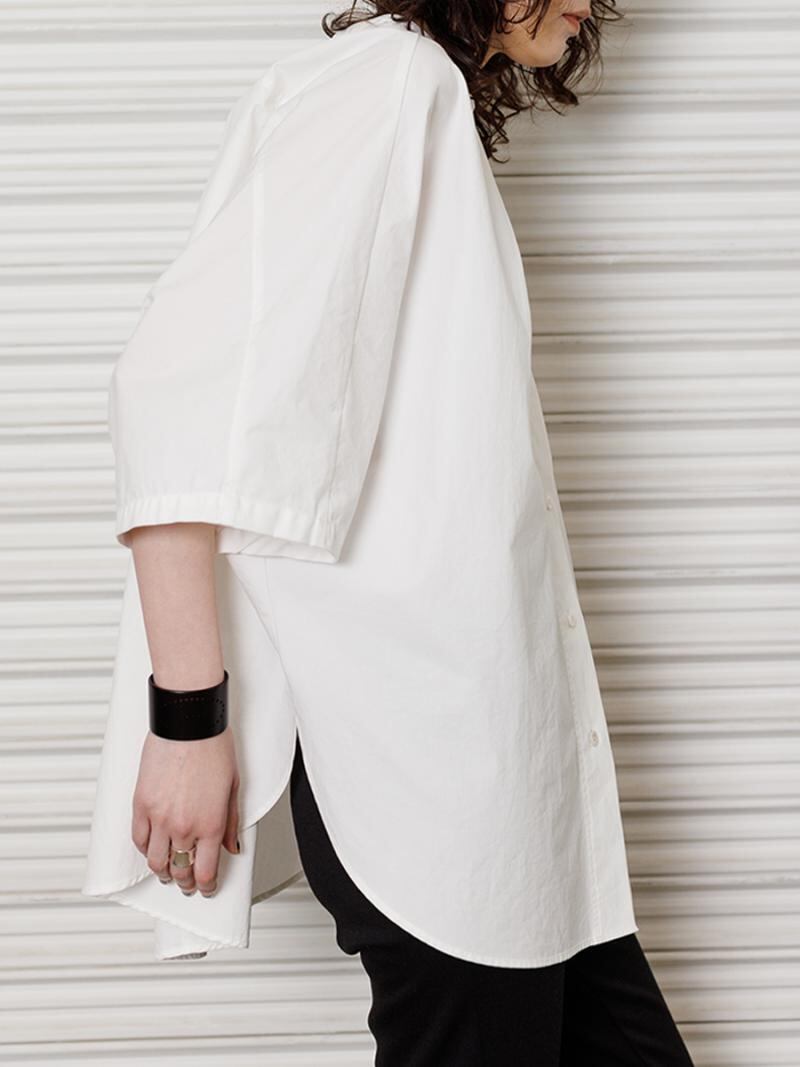 洗いざらしのようなカジュアルな風合いの生地を使用したポンチョ型シャツです。