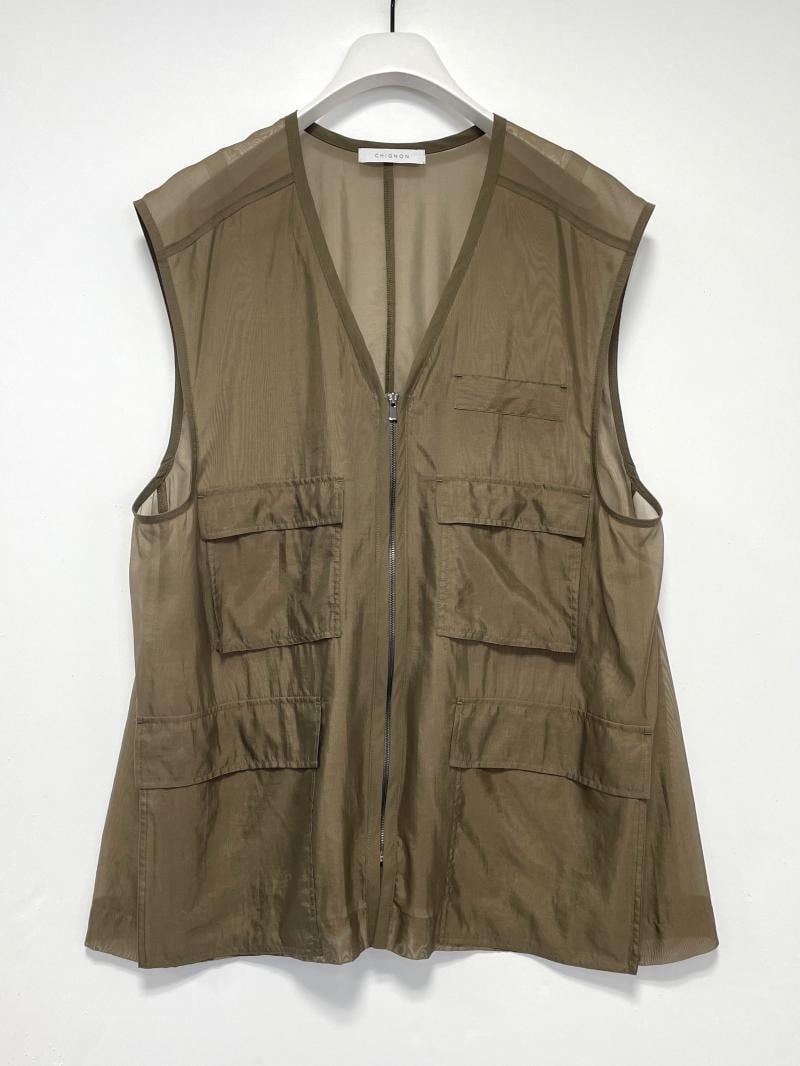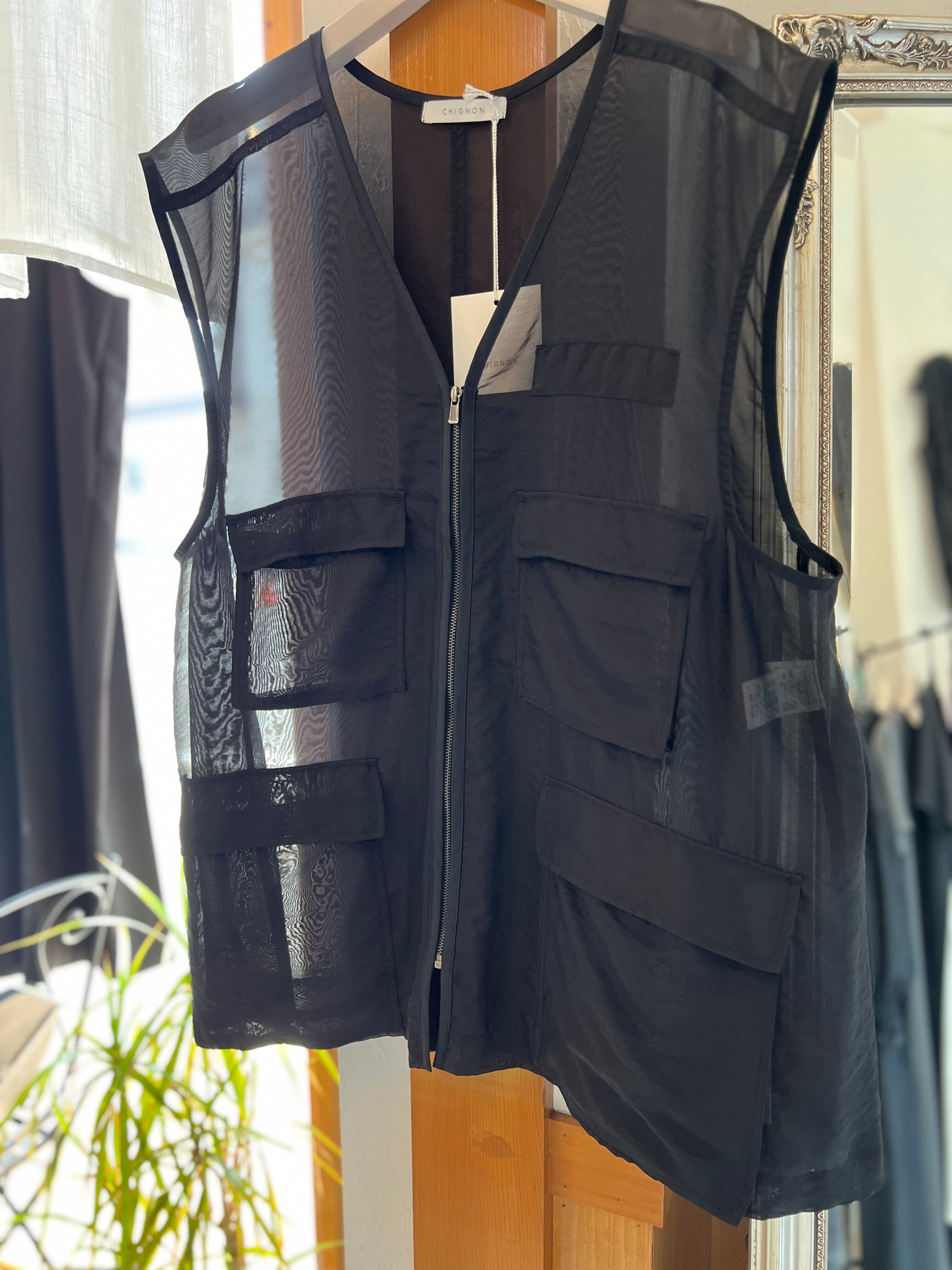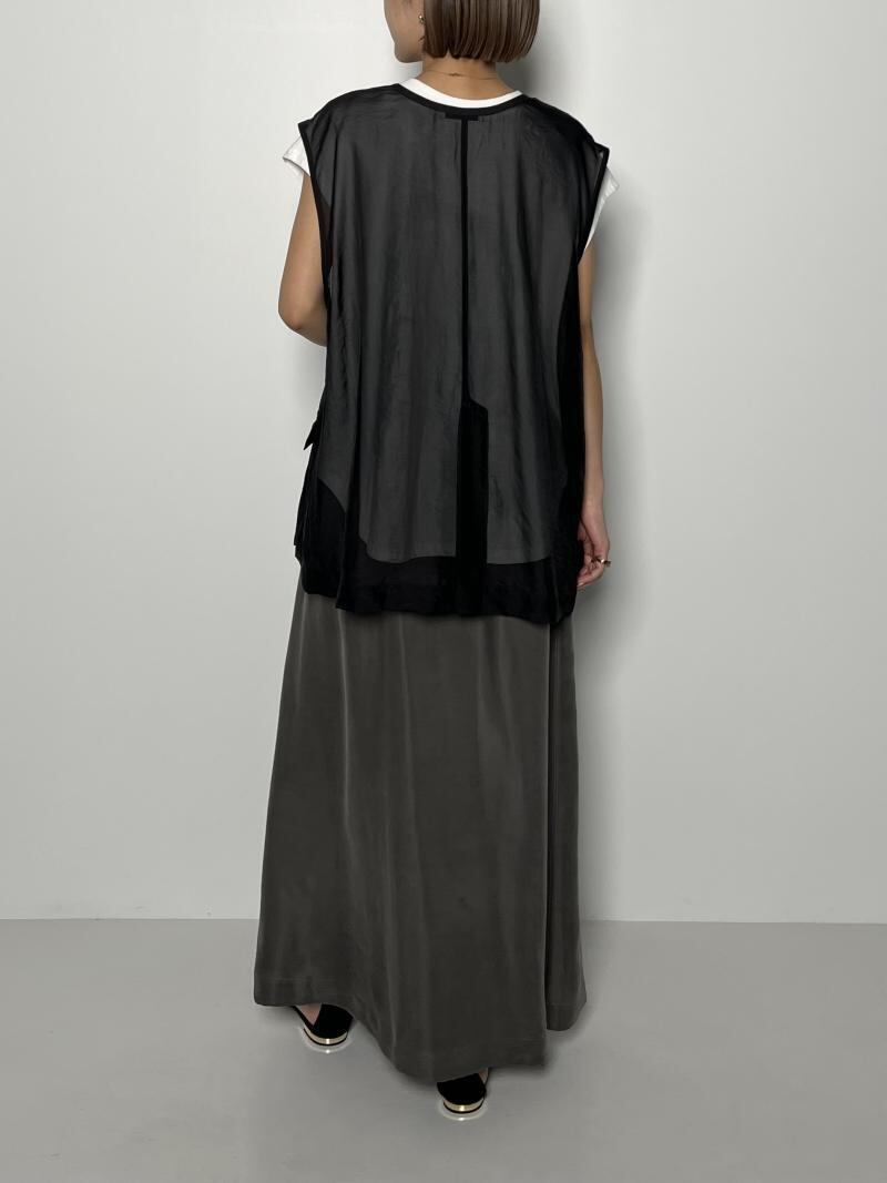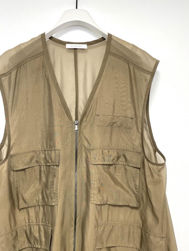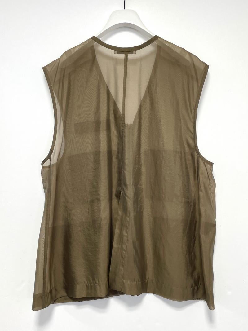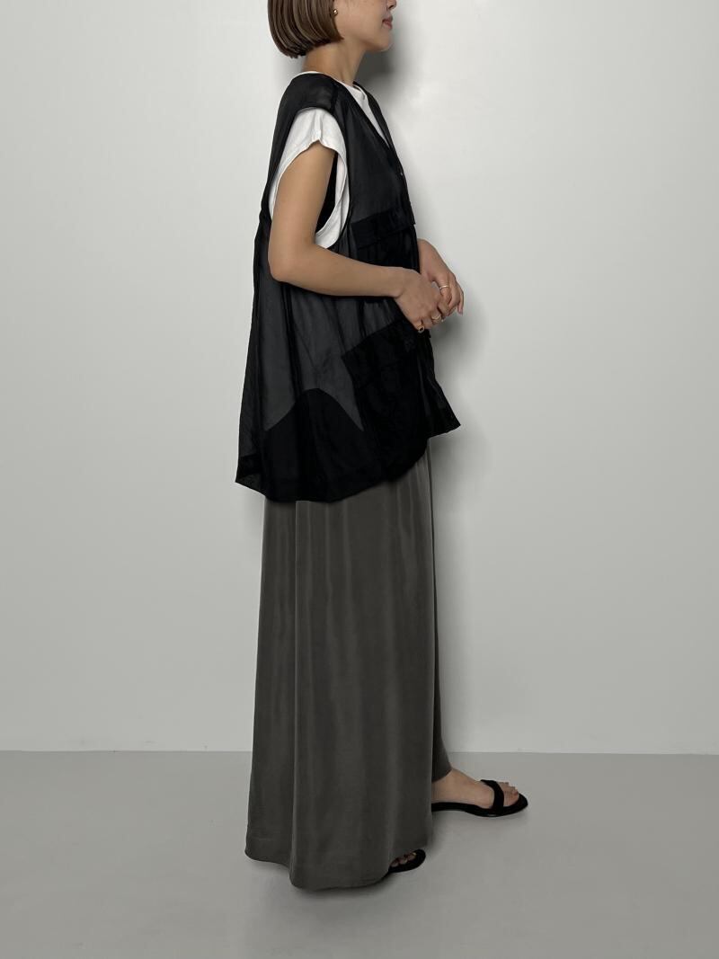シアーなシワ感のあるオーガンジー素材のベストになります。