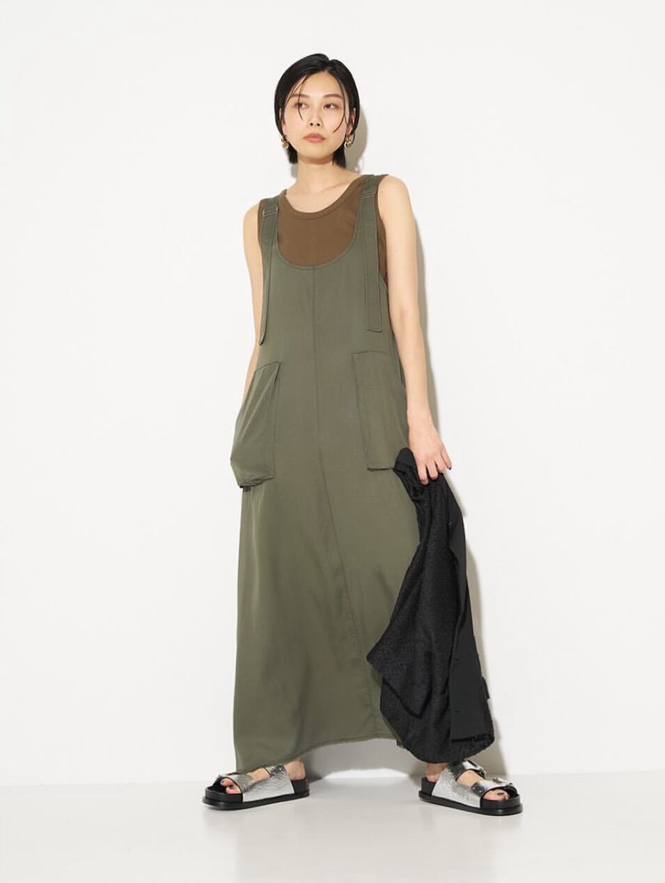 フロントのドレープのポケットがデザインポイントに。
