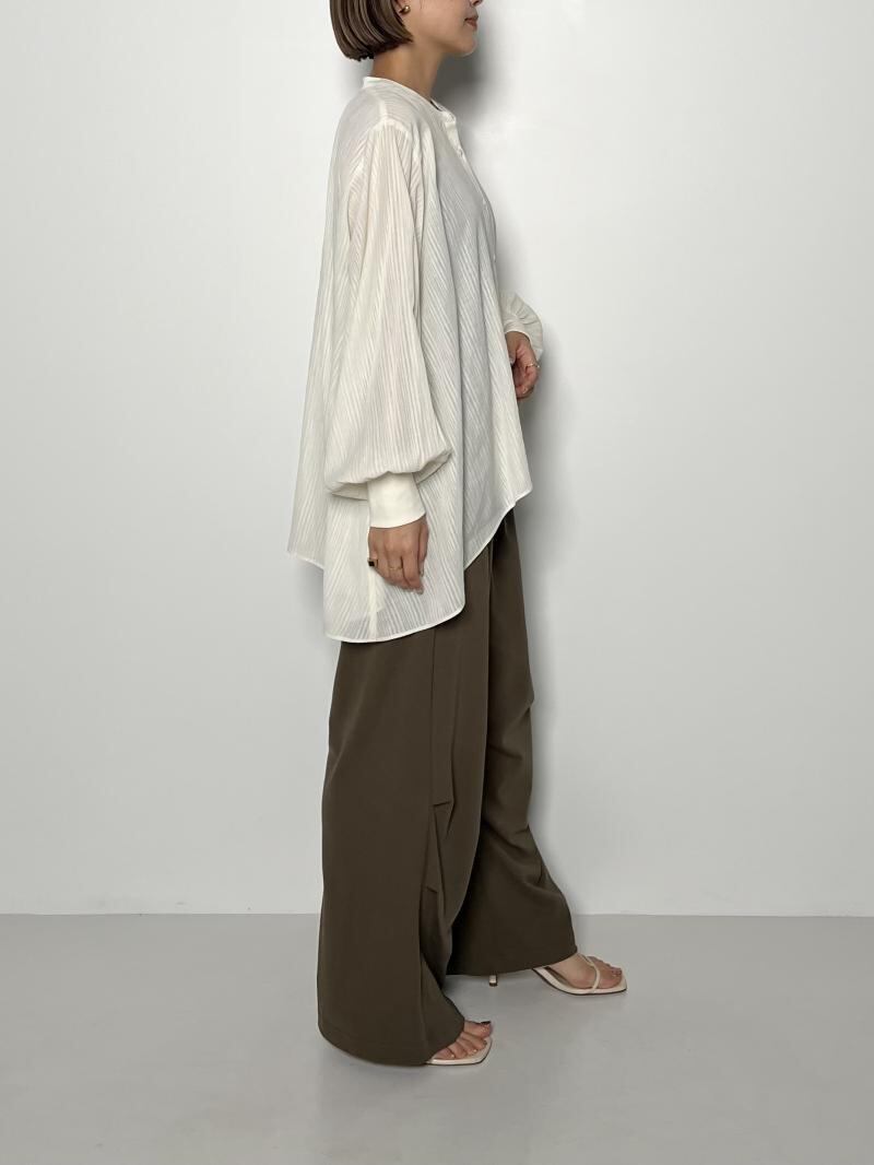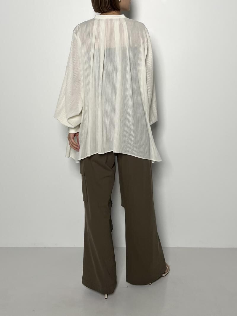 軽やかで表情のある素材が特徴のシアー袖リブSHです。