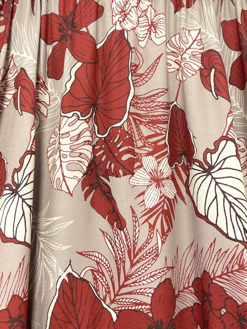 リーフのモチーフでリゾート感を演出しながらも、カラーの配置で都会的に仕上げたところがポイント。オトナの女性も着用しやすい落ち着いたカラー展開もポイントです。