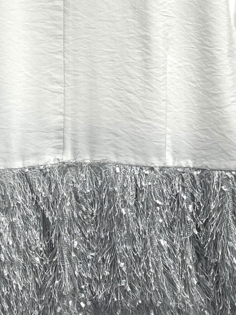 細い毛足のあるフリンジ素材とナチュラルな合繊素材を使用。