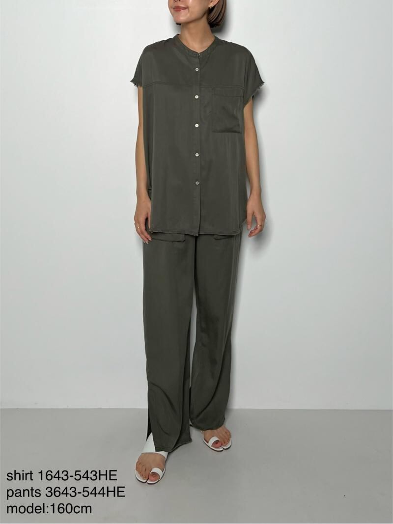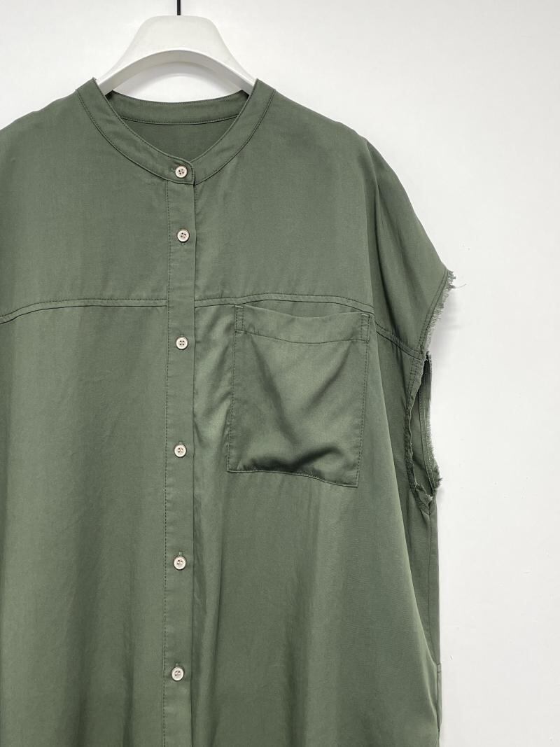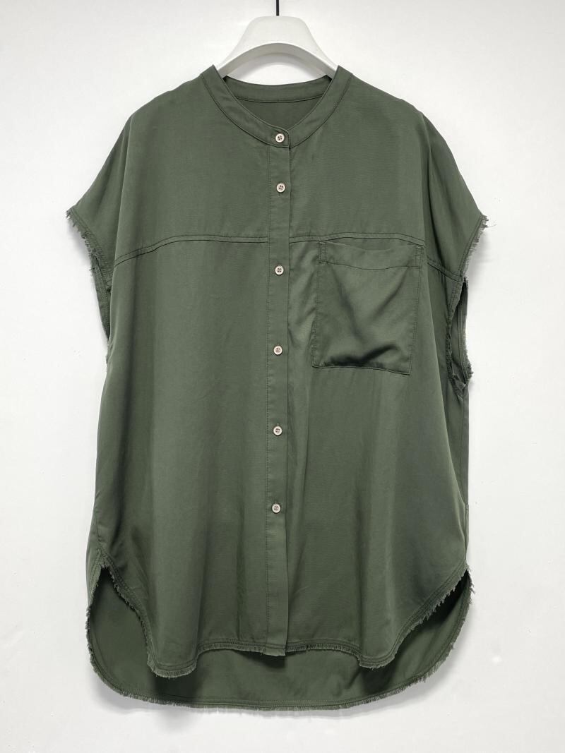 落ち感のある素材にウォッシュ加工を入れた、フレンチスリーブシャツです。