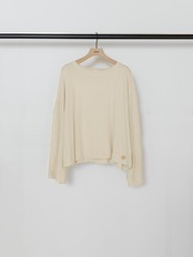 繊細な綿糸で編み立てたシアー感のあるカットソーは、清涼感があり肌さわりが良く夏場にも涼しく着用いただける素材です。シンプルなワイドシルエットの形のTシャツで着丈は少し短めになっていて、オーバーサイズでも野暮ったくならない、着用時のバランスを計算して作った大人ロンTです。 裾に施したロゴチャームもさりげないポイントです。