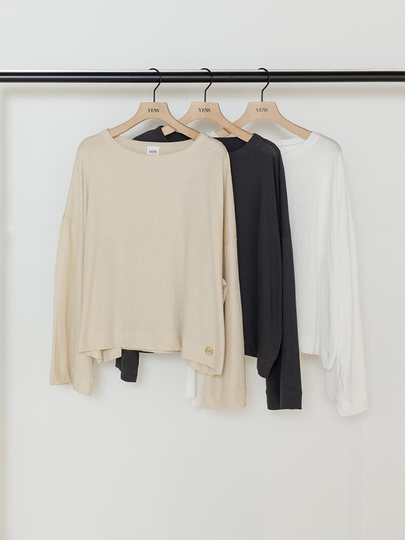 太めの袖が特徴のボクシーシルエットのロンTです。