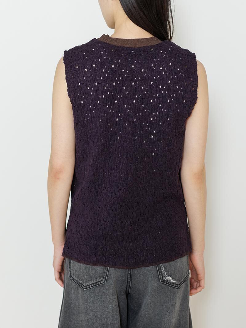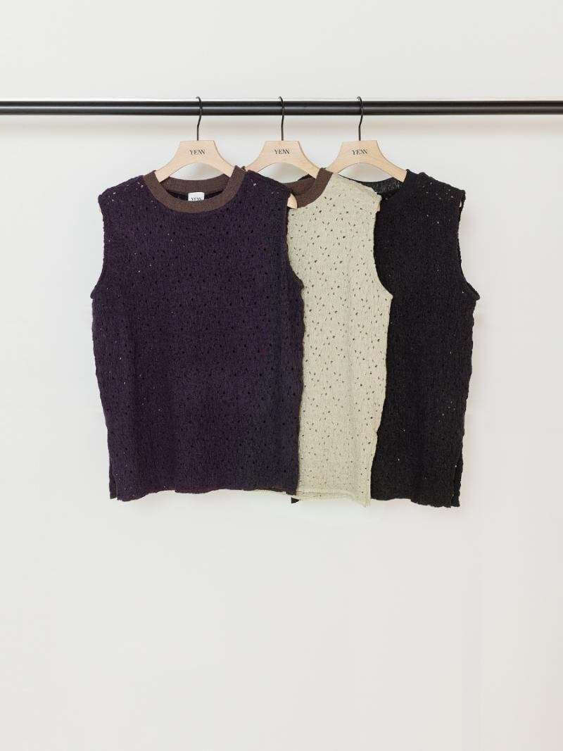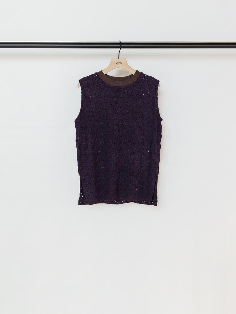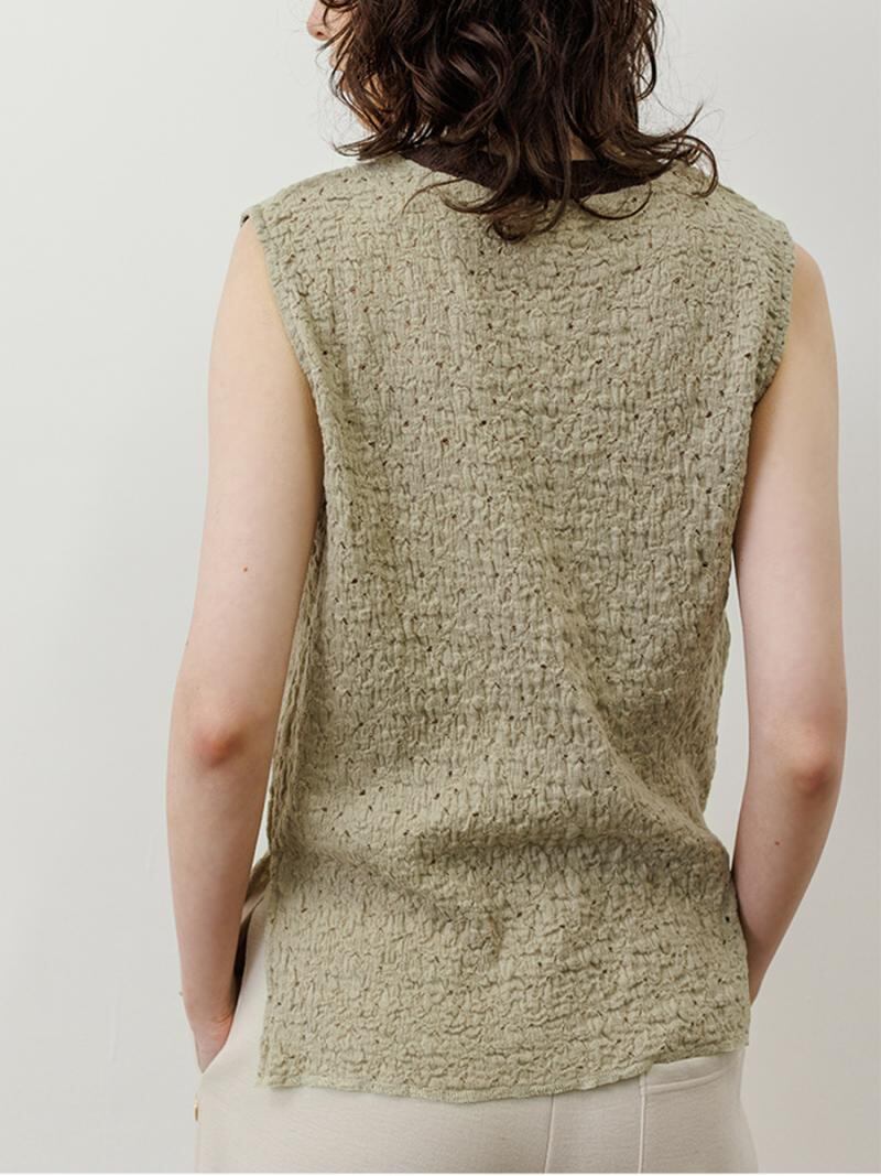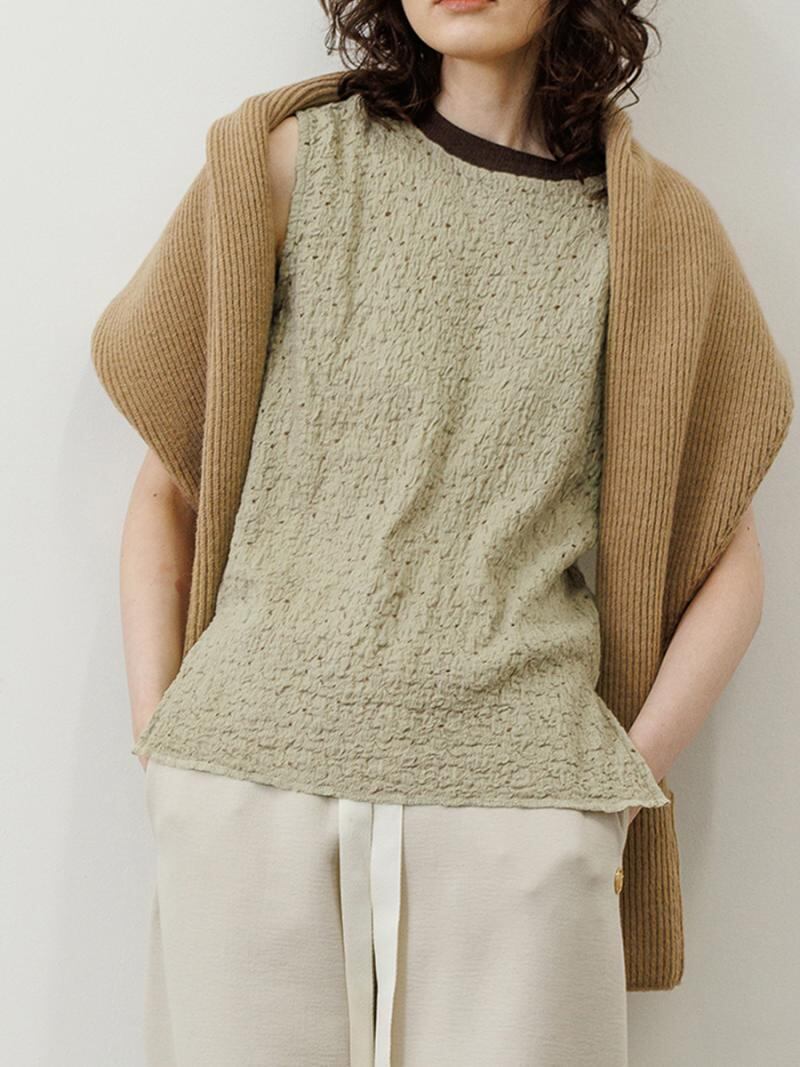 膨らみのあるカットソーレースを使用したノースリーブプルオーバーです。