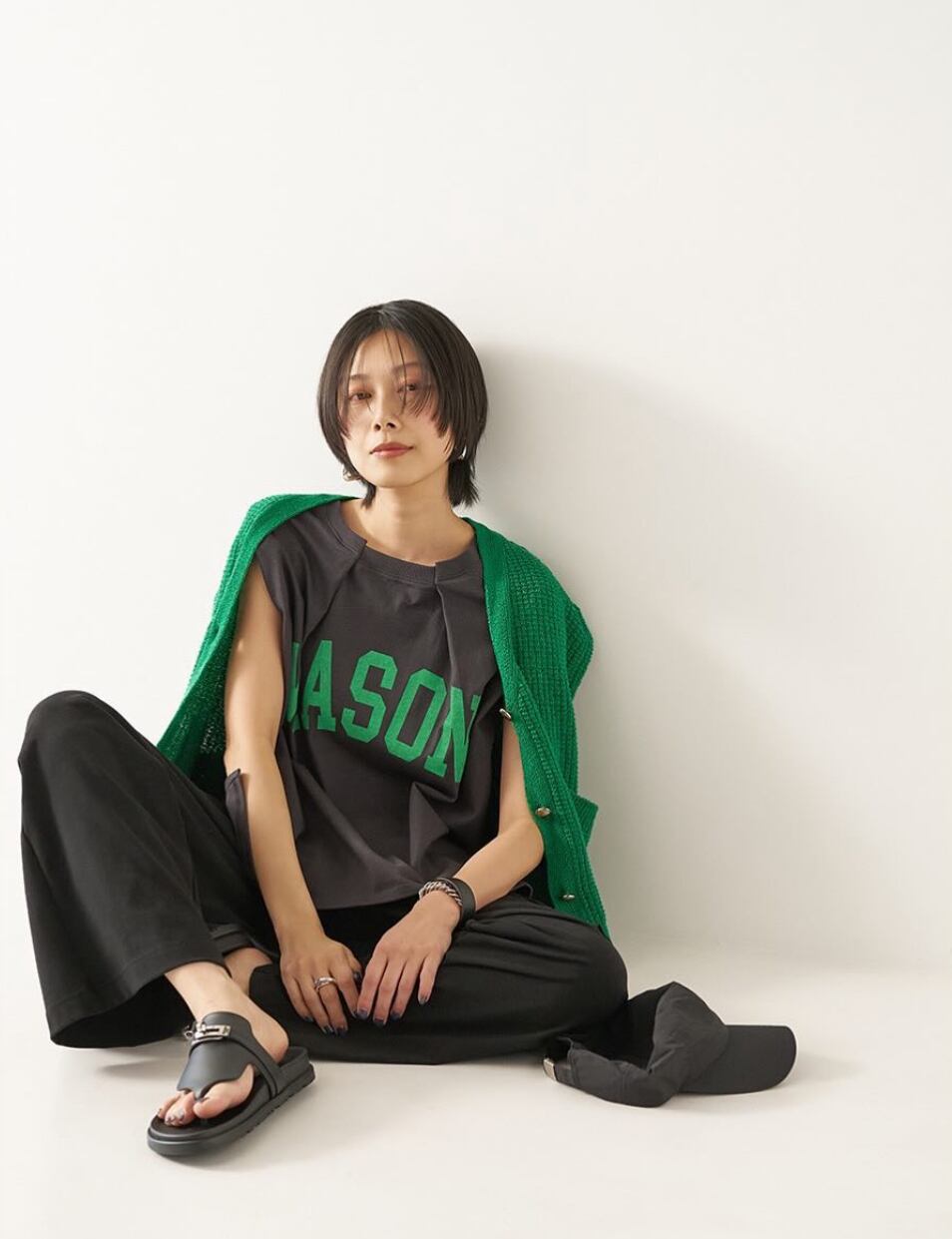 また、脇のワークなポケットや、前裾タックがポイントになっています。