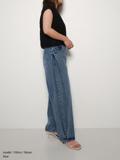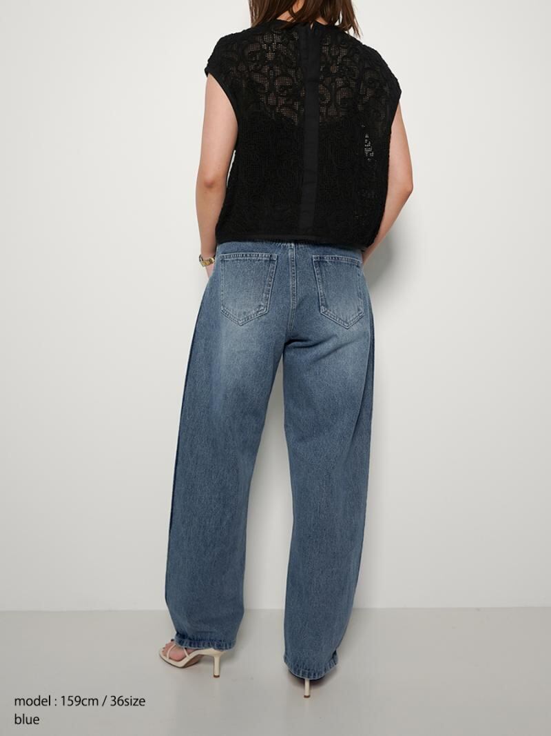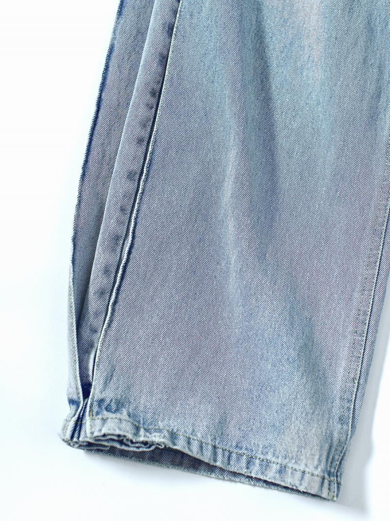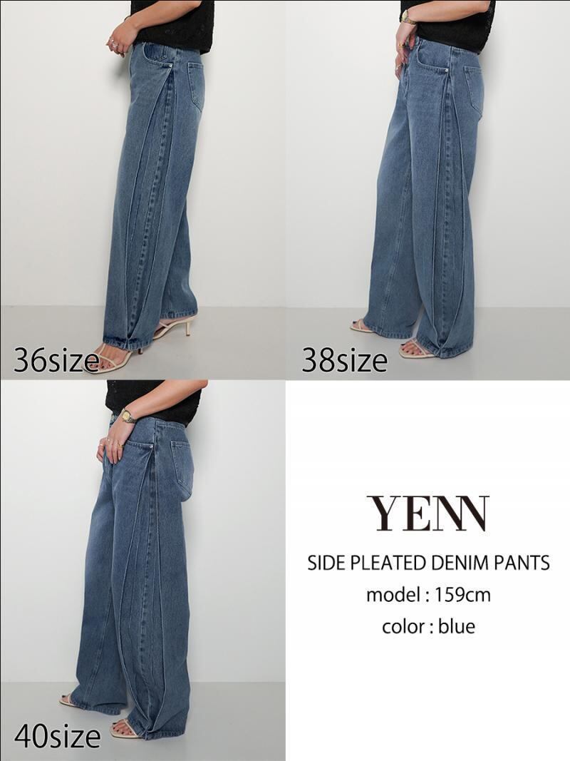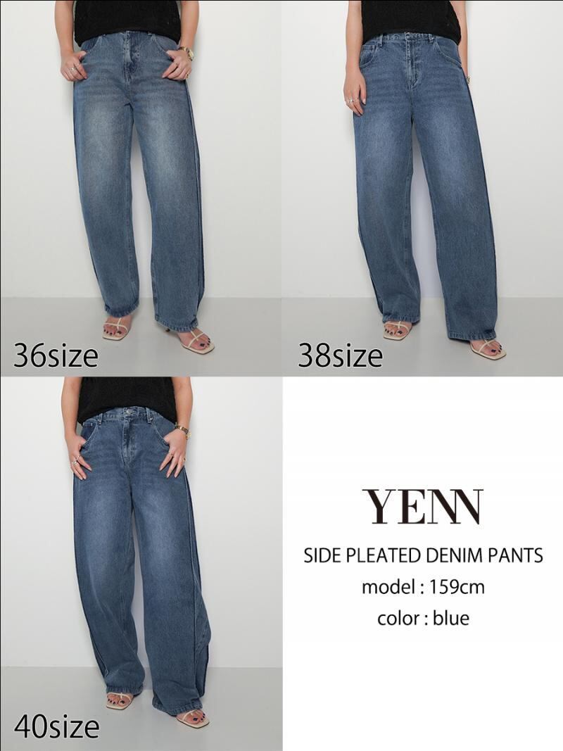 サイドに施したボックスプリーツがポイントのデニムパンツです。