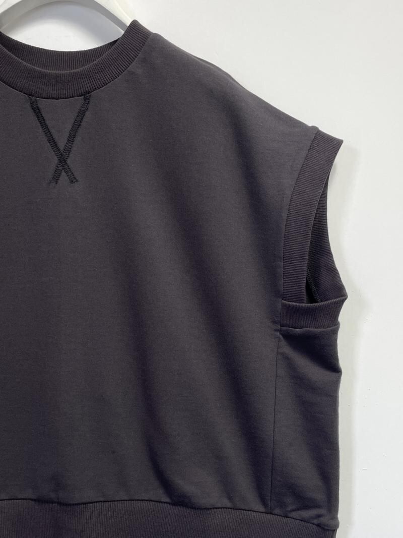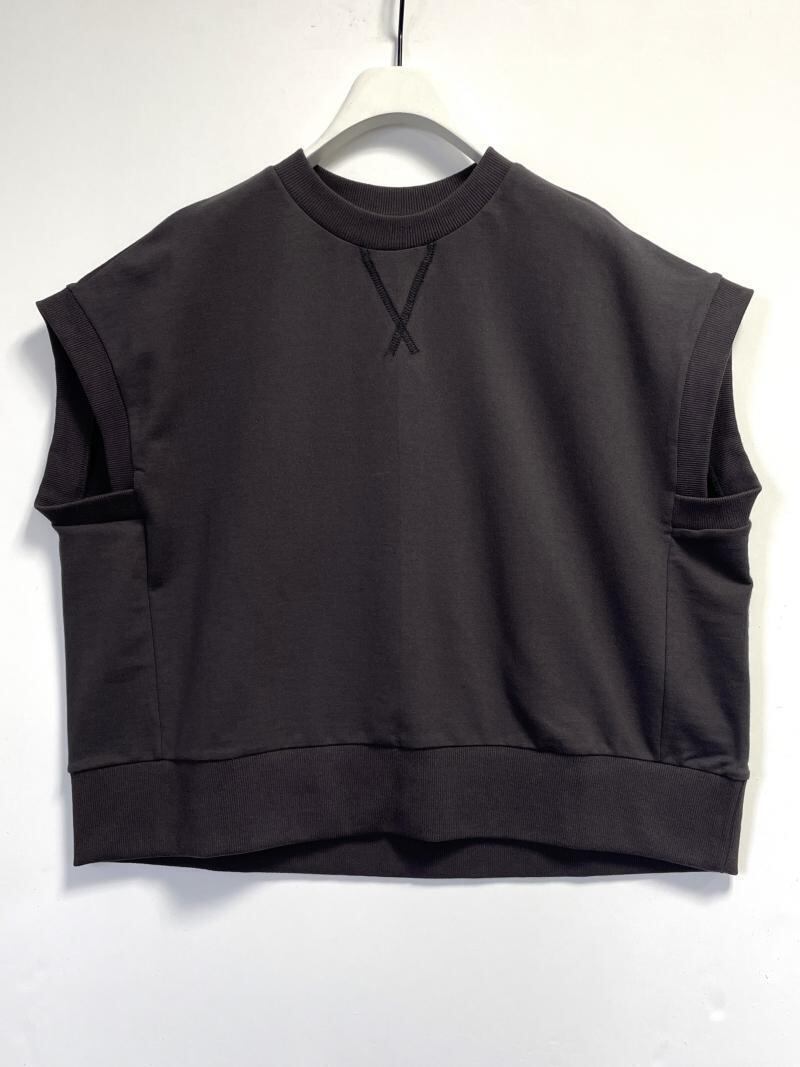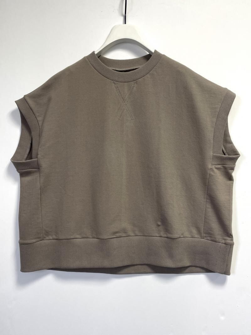 ミニ裏毛の素材で作成したミニマルなデザインのトップスです。