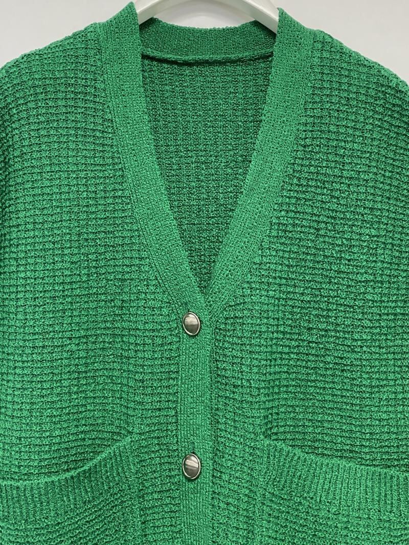 ワッフル組織のツイード風のニットベストです。空気を含んだようなボリュームのあるファンシーヤーンの糸をセレクトし、ワッフル編みで作成することでニットの表情感も楽しんでいただけるアイテムに。金ボタンを配すことでクラシカルな印象に纏め、短丈の設計でトレンド感を演出しました。