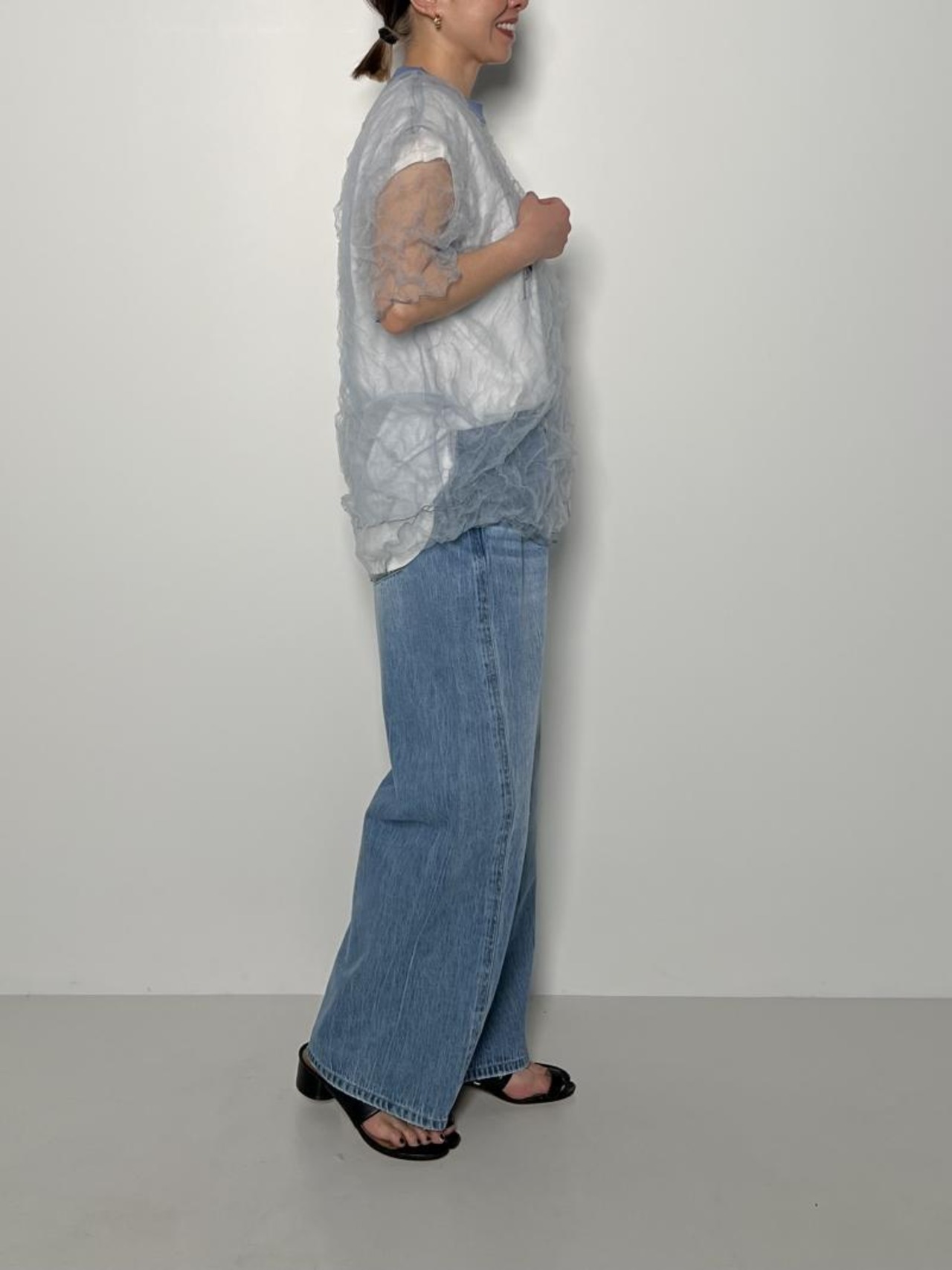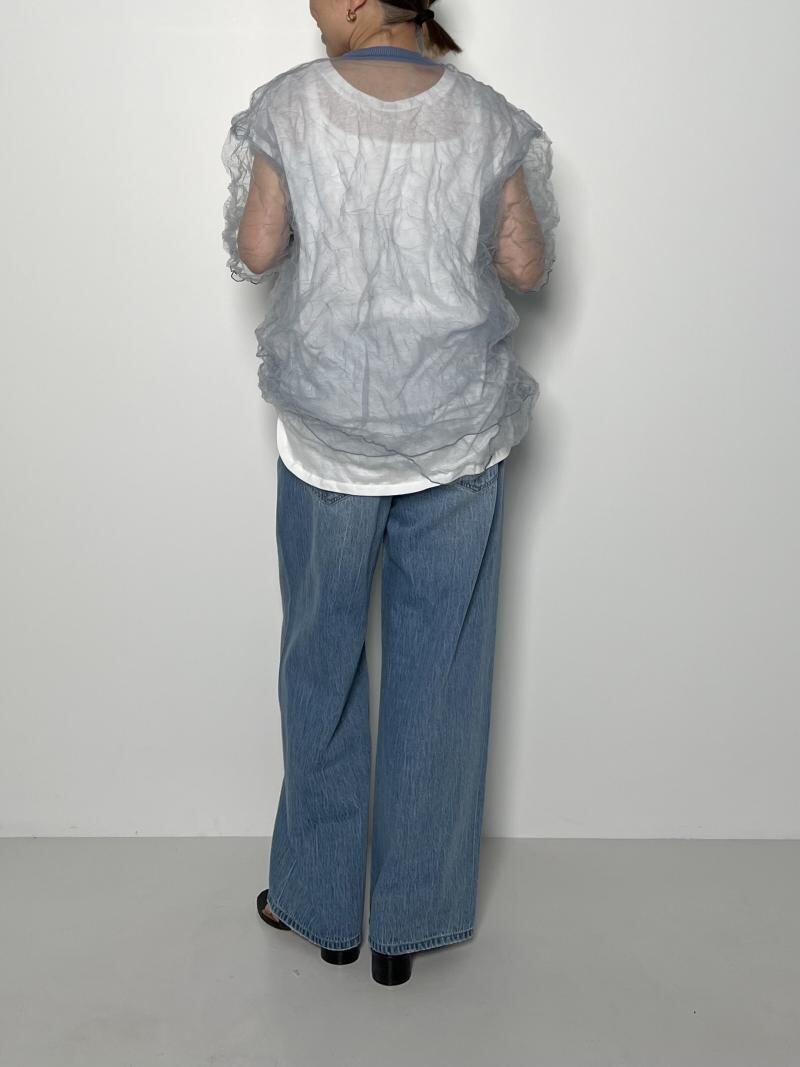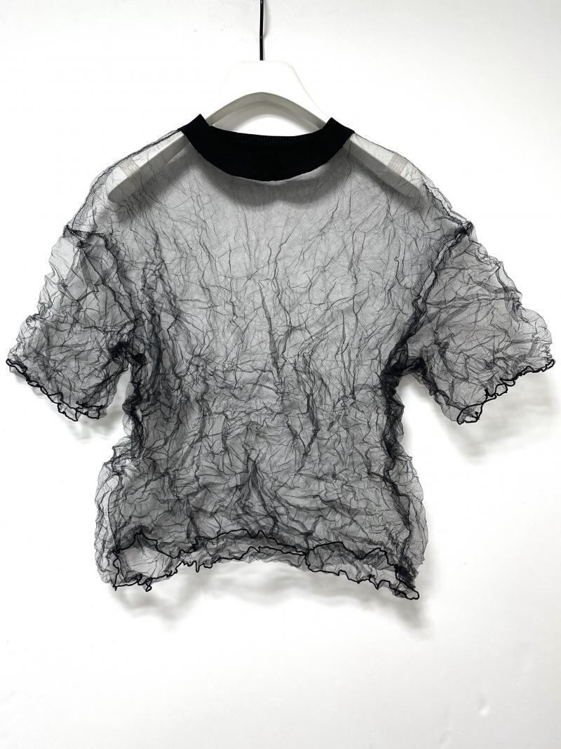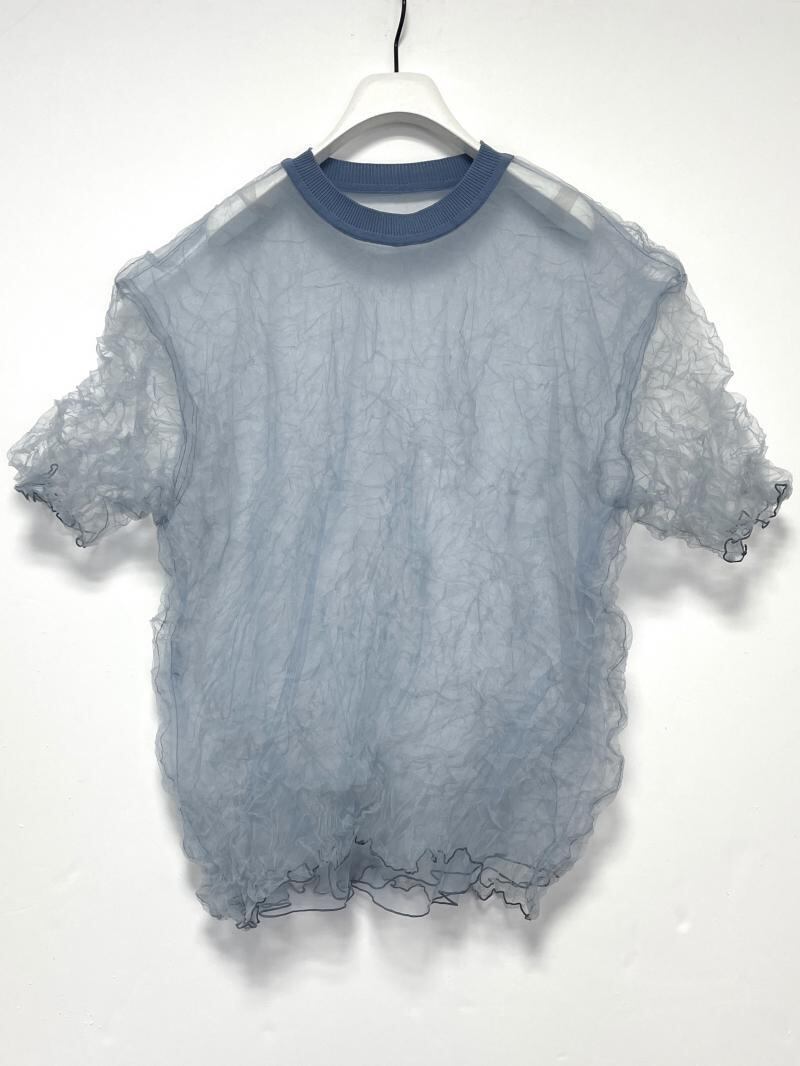 チュールにしシワ加工を施したデザインプルオーバーです。