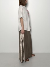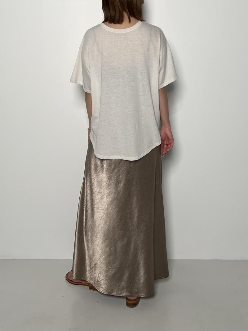 ドロップショルダーで女性らしいシルエットを作成。裾はラウンドに設計することで柔らかい印象に仕上げ、インしてもアウトしてもこなれるデザインにまとめました。前後着用できる仕様・サイズ感に設計し、着回し力の高いアイテムに仕上げました。