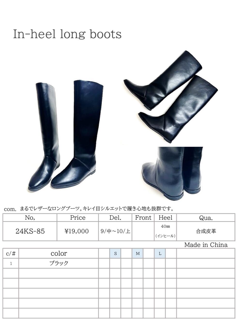 予約販売【 ATELIER BRUGGE 】In-heel long boots (24KS-85) 10月上旬お届け