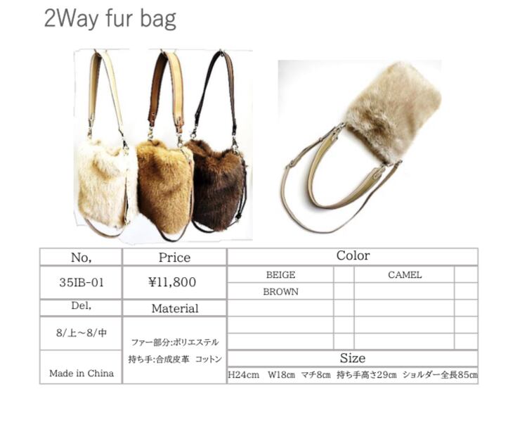 予約販売【 ATELIER BRUGGE 】2Way fur bag (351B-01) 8月中旬お届け