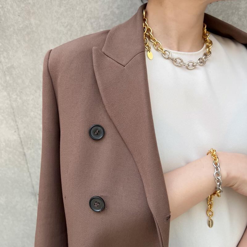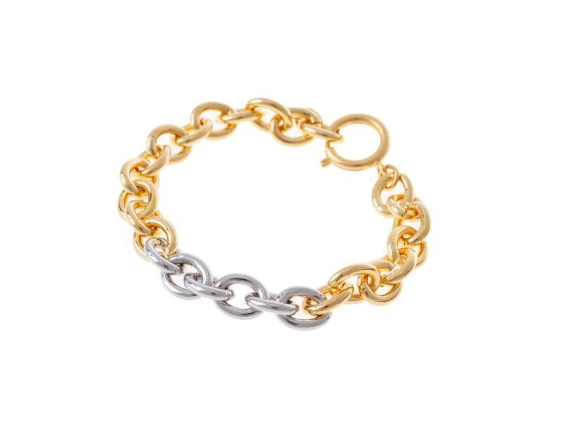 GLDとSLVのMIXカラーが様々な表情として見せれるチェーンブレス。