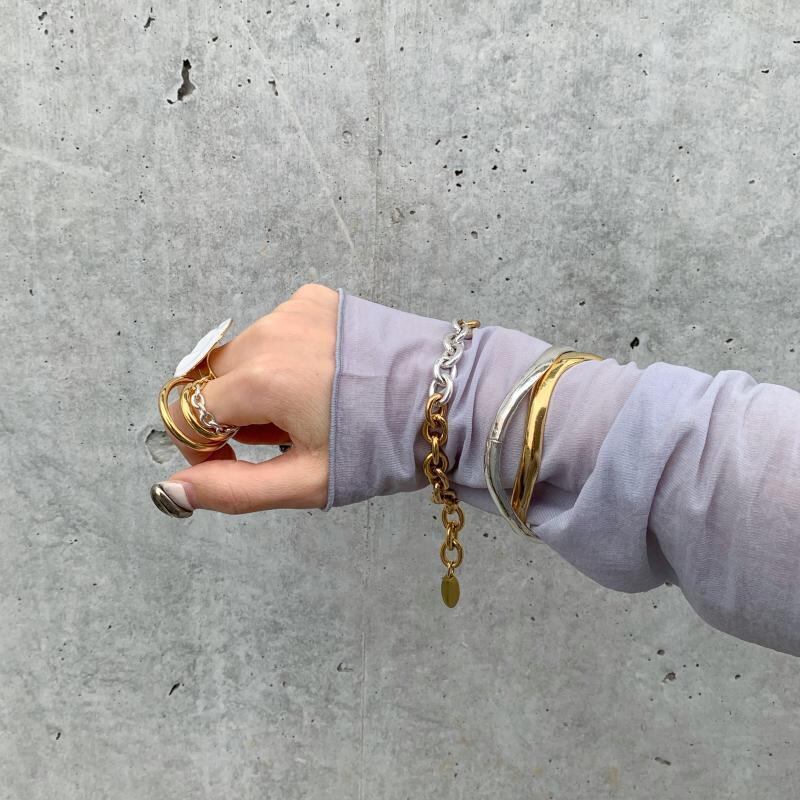 丸みのあるフォルムのチェーンはハードすぎないブレスレットに仕上がっています。