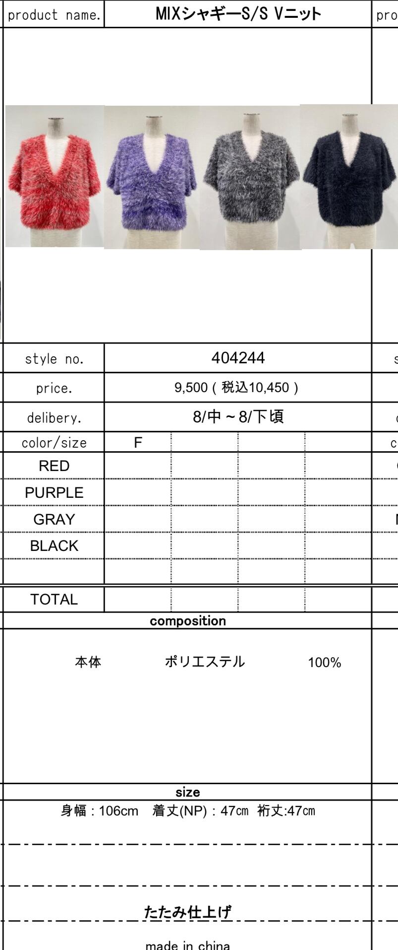 MIXシャギーS/S Vニット