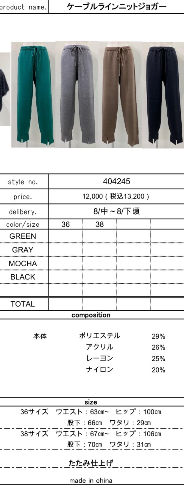 予約販売【 CYAN TOKYO 】ケーブルラインニットジョガー(404245) 8月下旬頃お届け