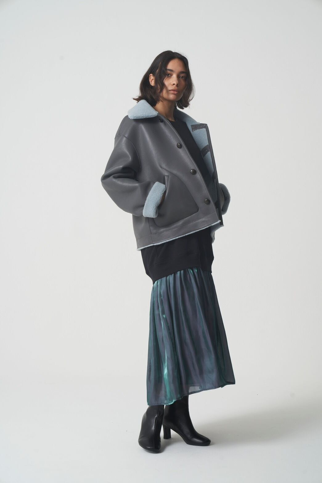 が目を惹く、存在感ある1枚です。袖部分にはファスナー付きスリットを施し、ケープの様な着こなしアレンジが楽しめます。