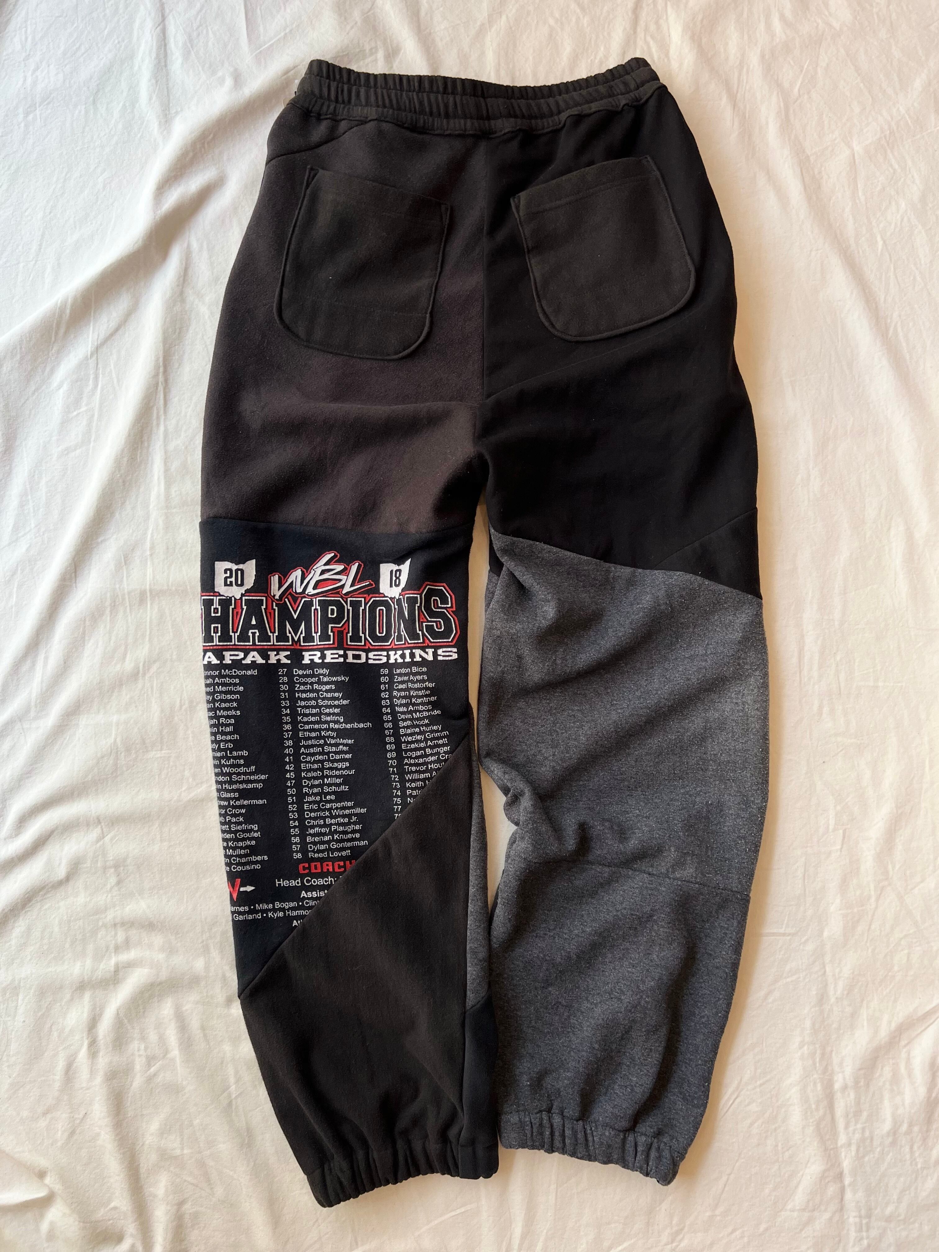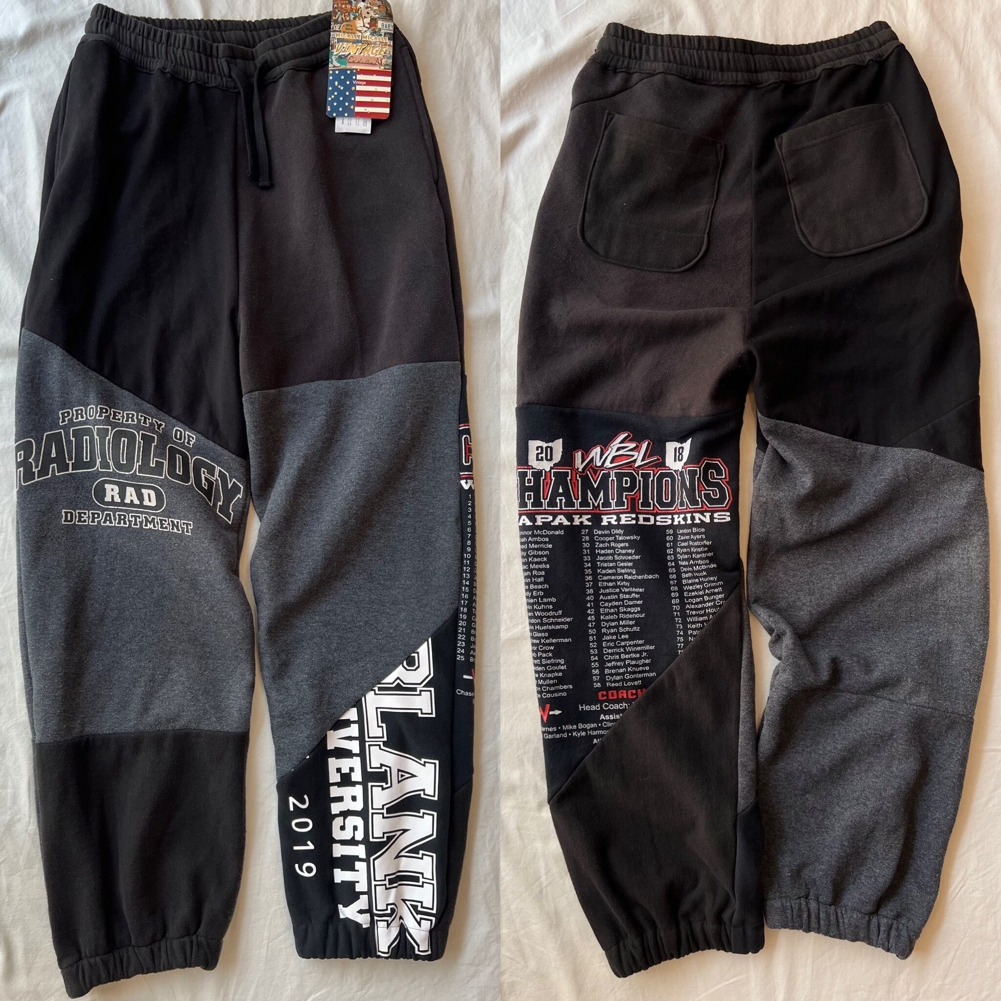 こちらの商品は古着をリメイクした裏起毛のスウェットパンツとなります。
