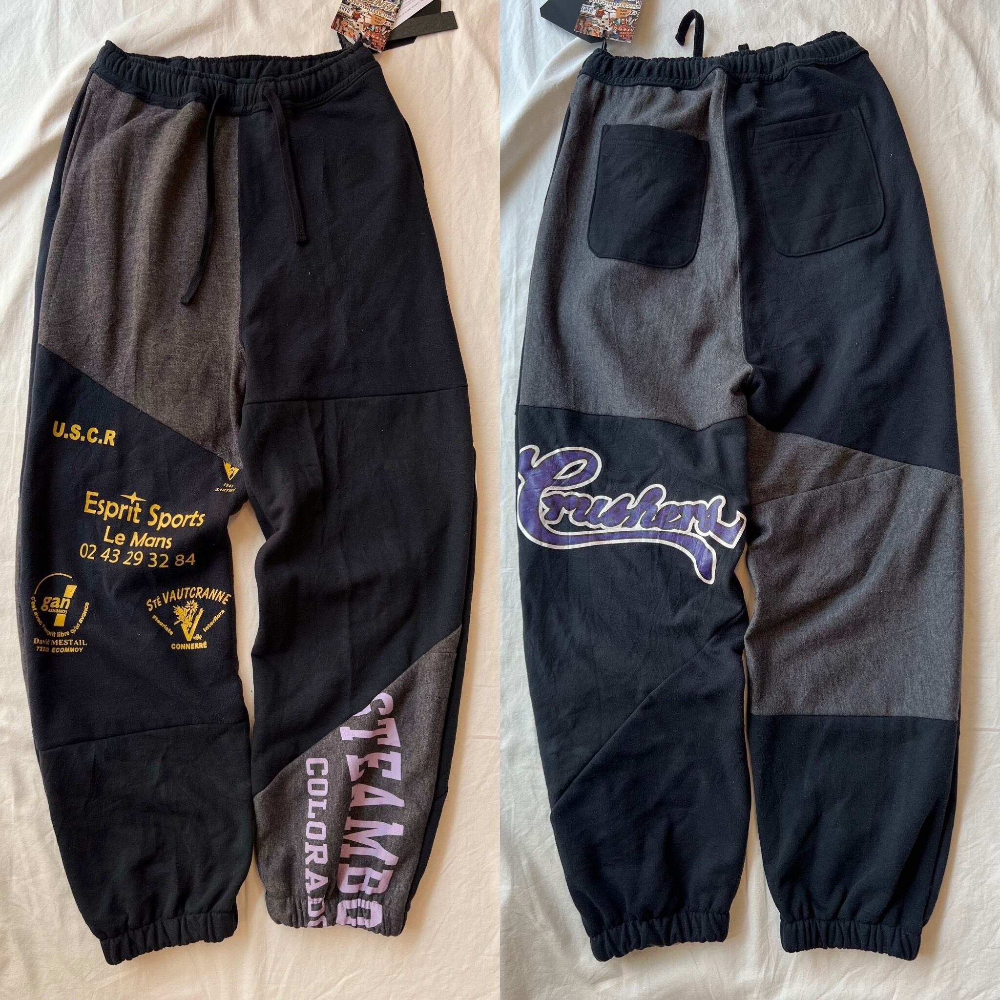 こちらの商品は古着をリメイクした裏起毛のスウェットパンツとなります。