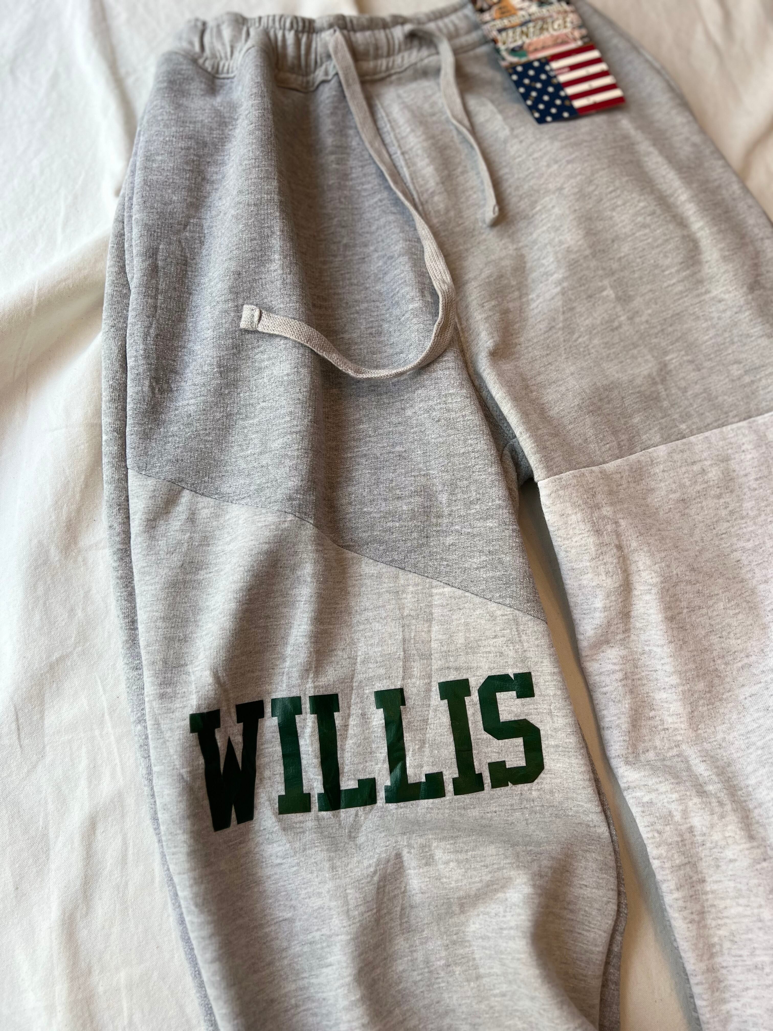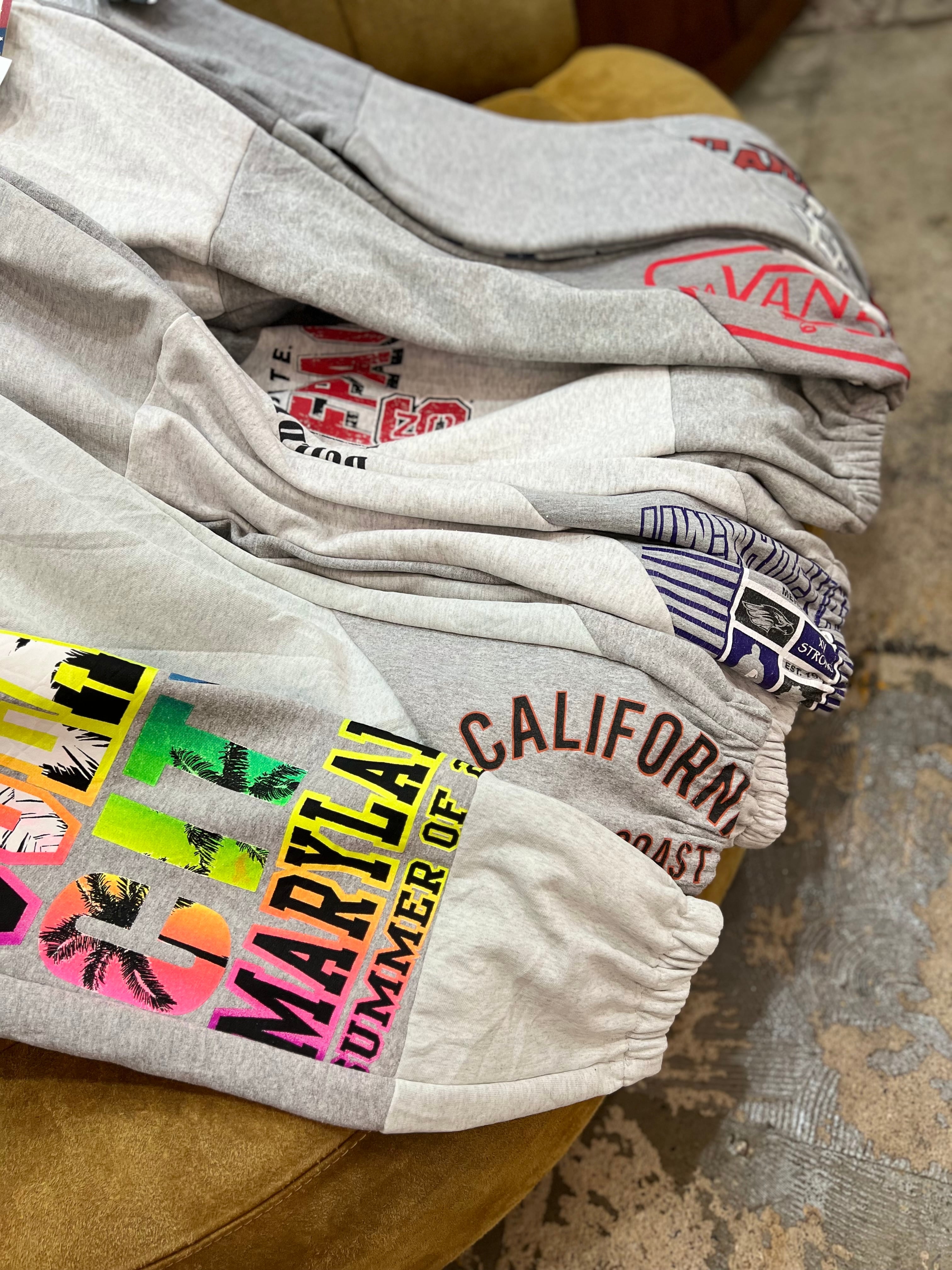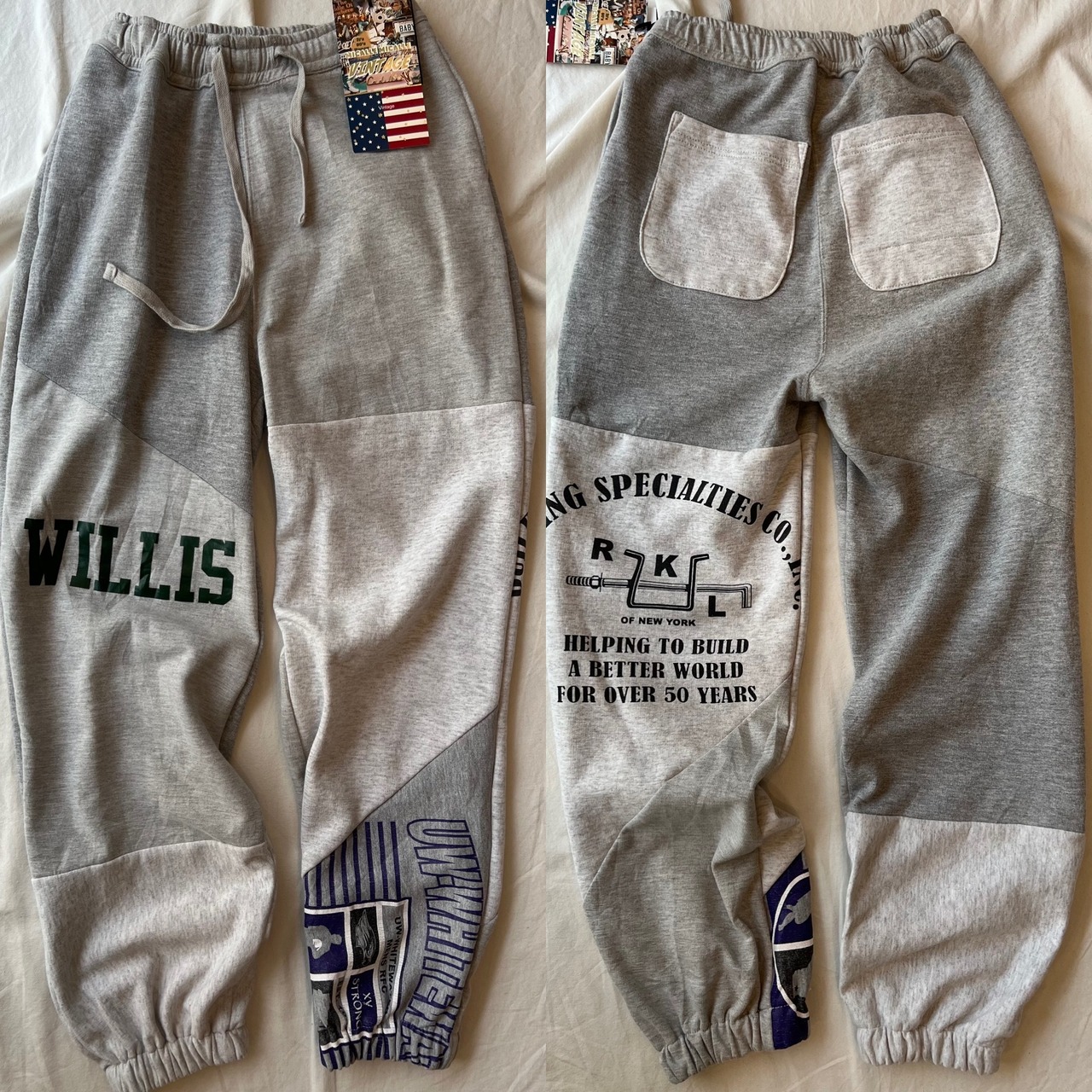 こちらの商品は古着をリメイクした裏起毛のスウェットパンツとなります。