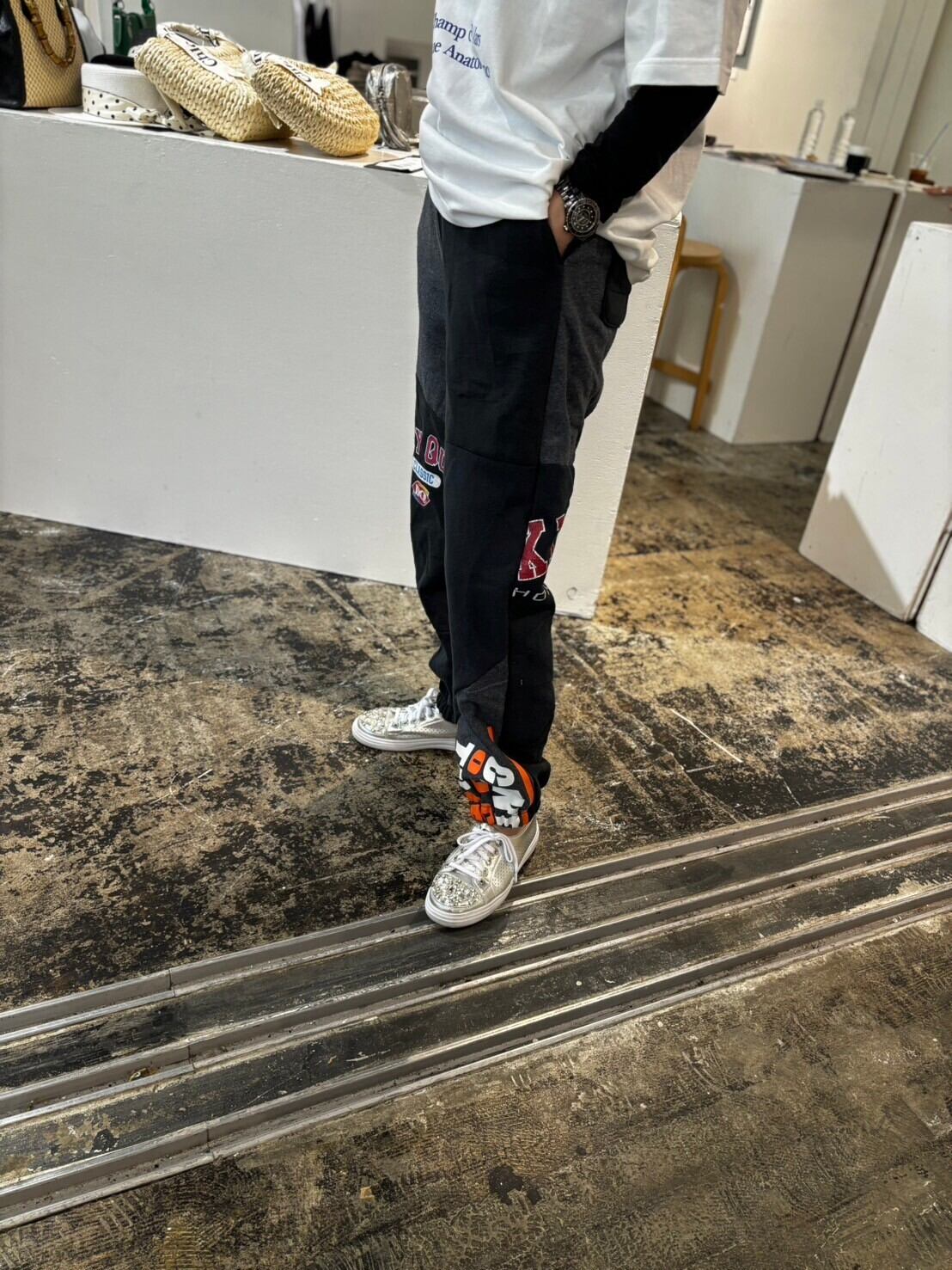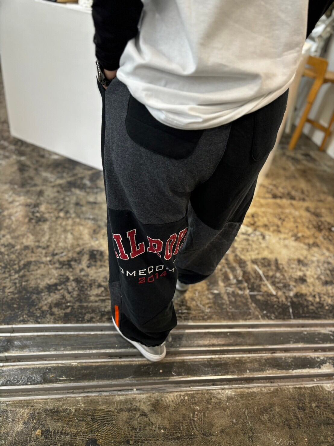 こちらの商品は古着をリメイクした裏起毛のスウェットパンツとなります。