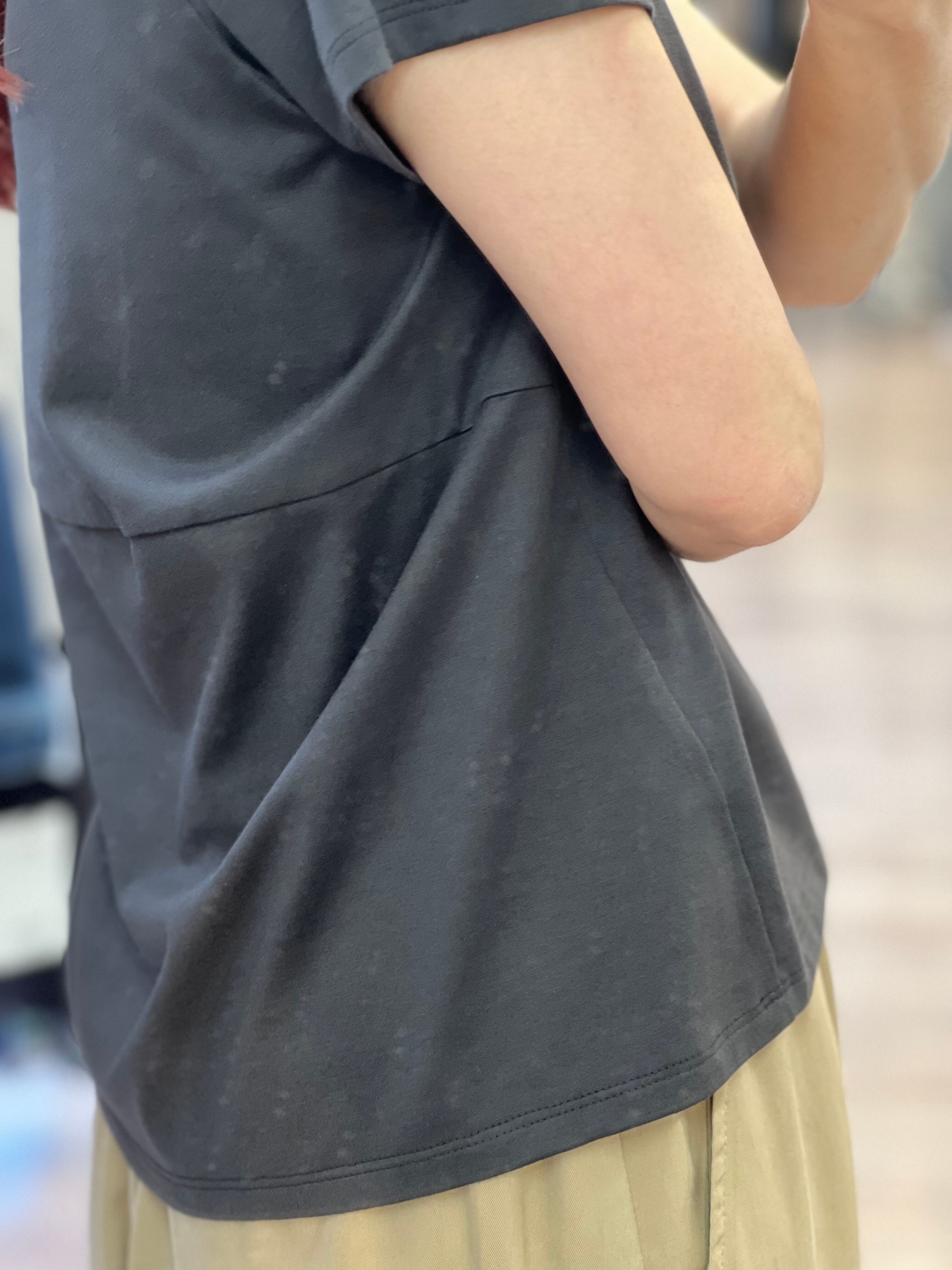 シンプルなコンパクトTEEですが後身頃に切替デザインがあり着やすいデザインです。
