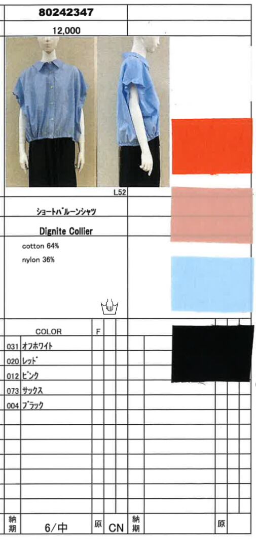 予約販売【 Dignite Collier 】ショートバルーンシャツ (80242347) 6月中旬お届け