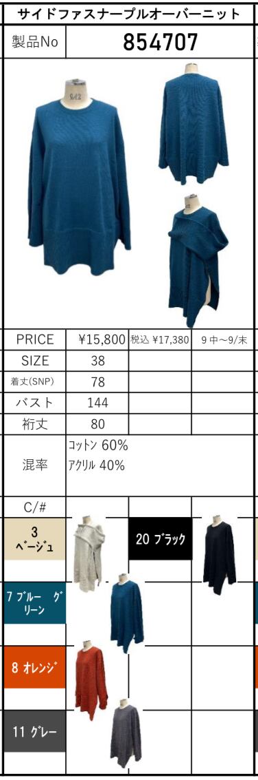 予約販売【 ayane 】サイドファスナープルオーバーニット (854707) 9月末お届け