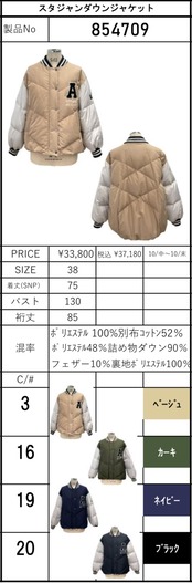 予約販売【 ayane 】スタジャンダウンジャケット (854709) 10月末お届け