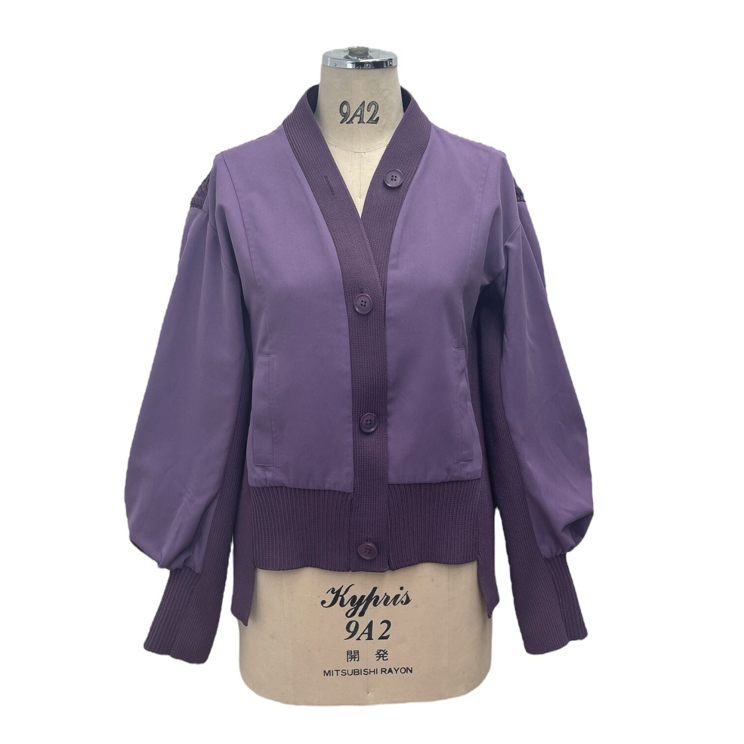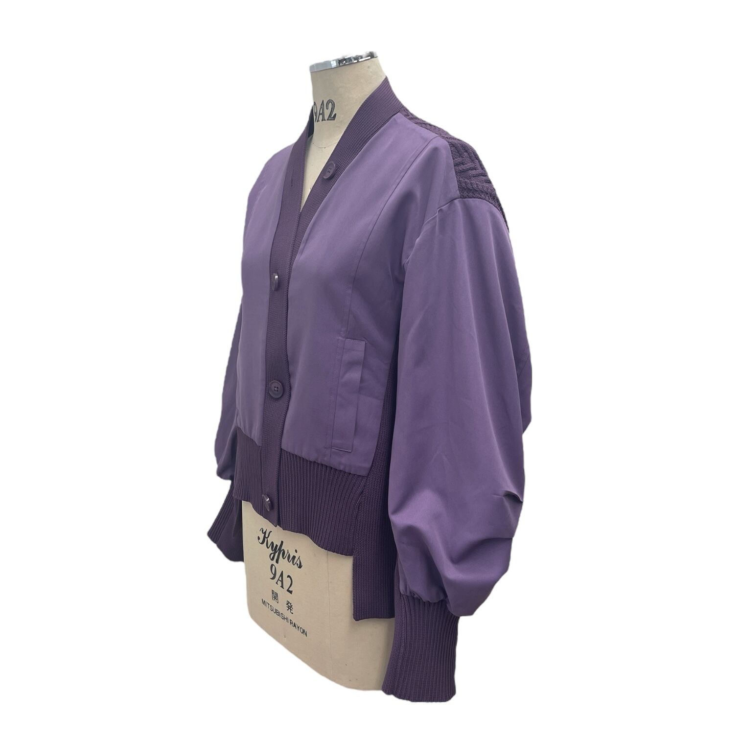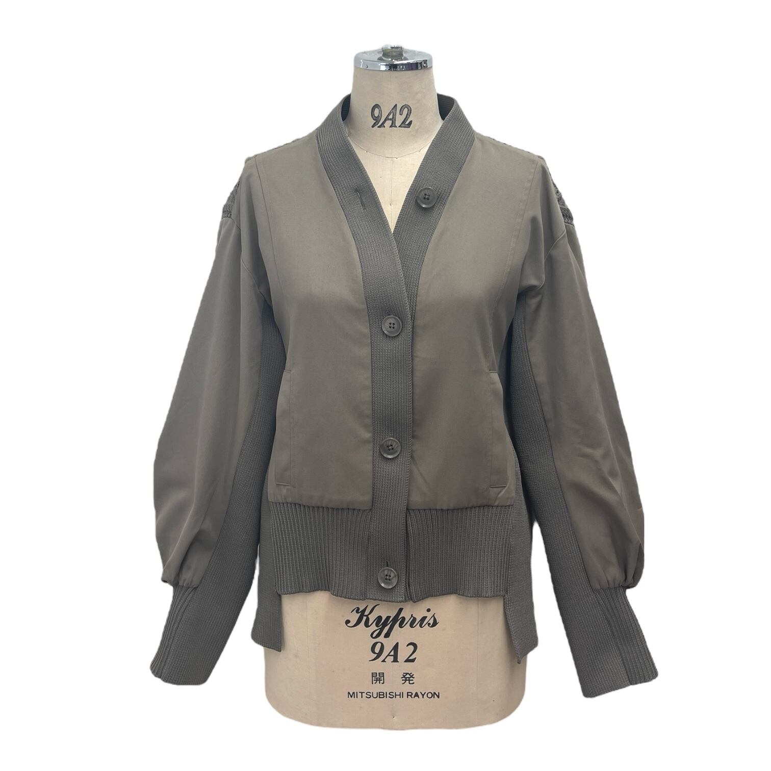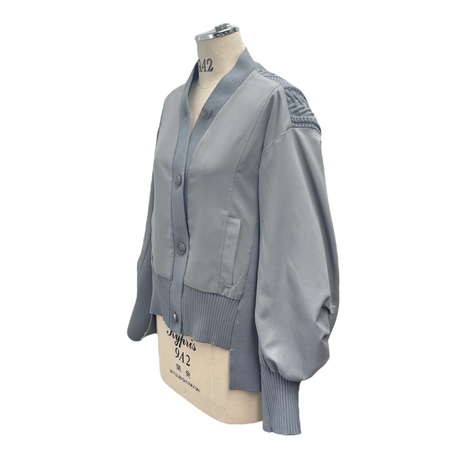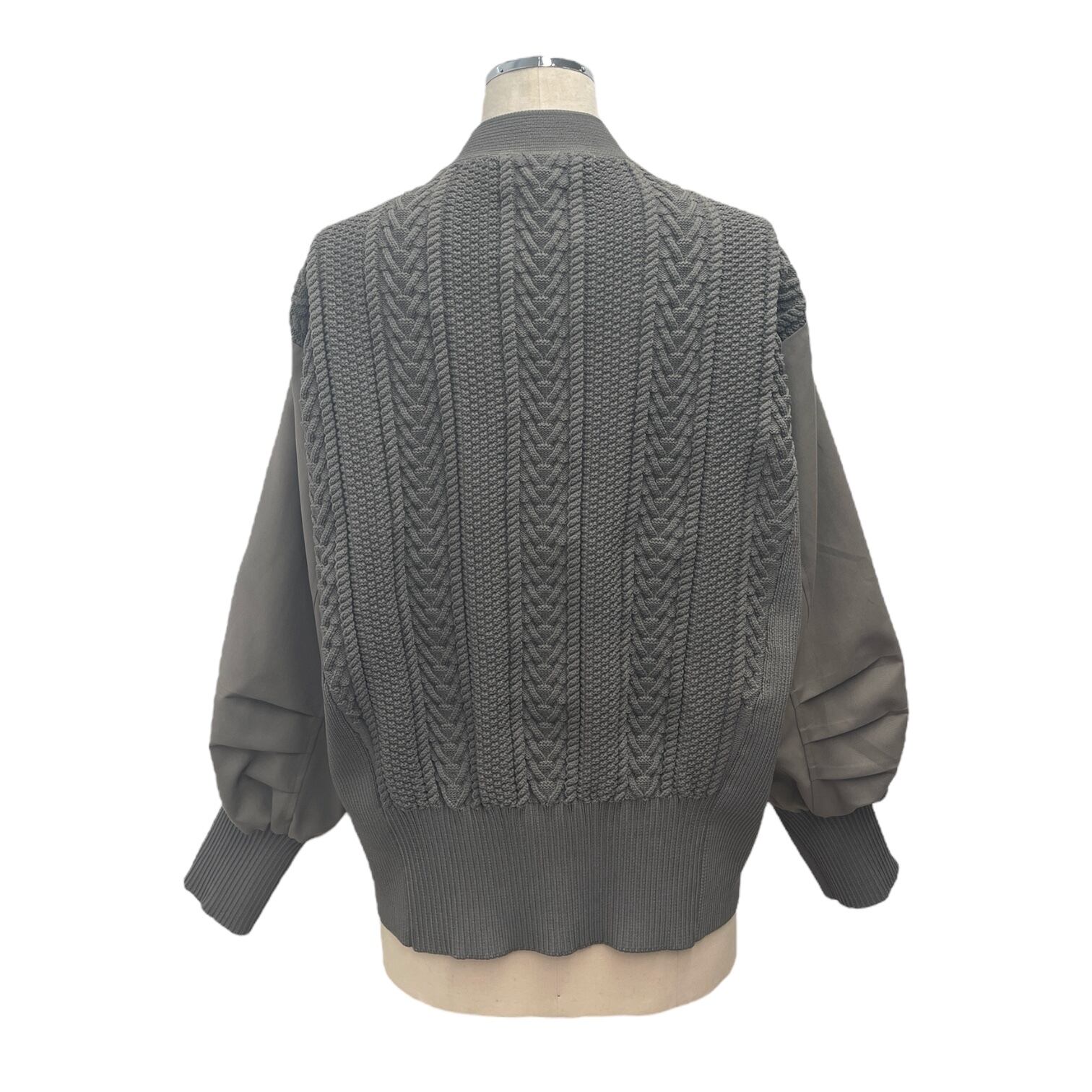 ケーブル編みドッキングブルゾンカーディガン