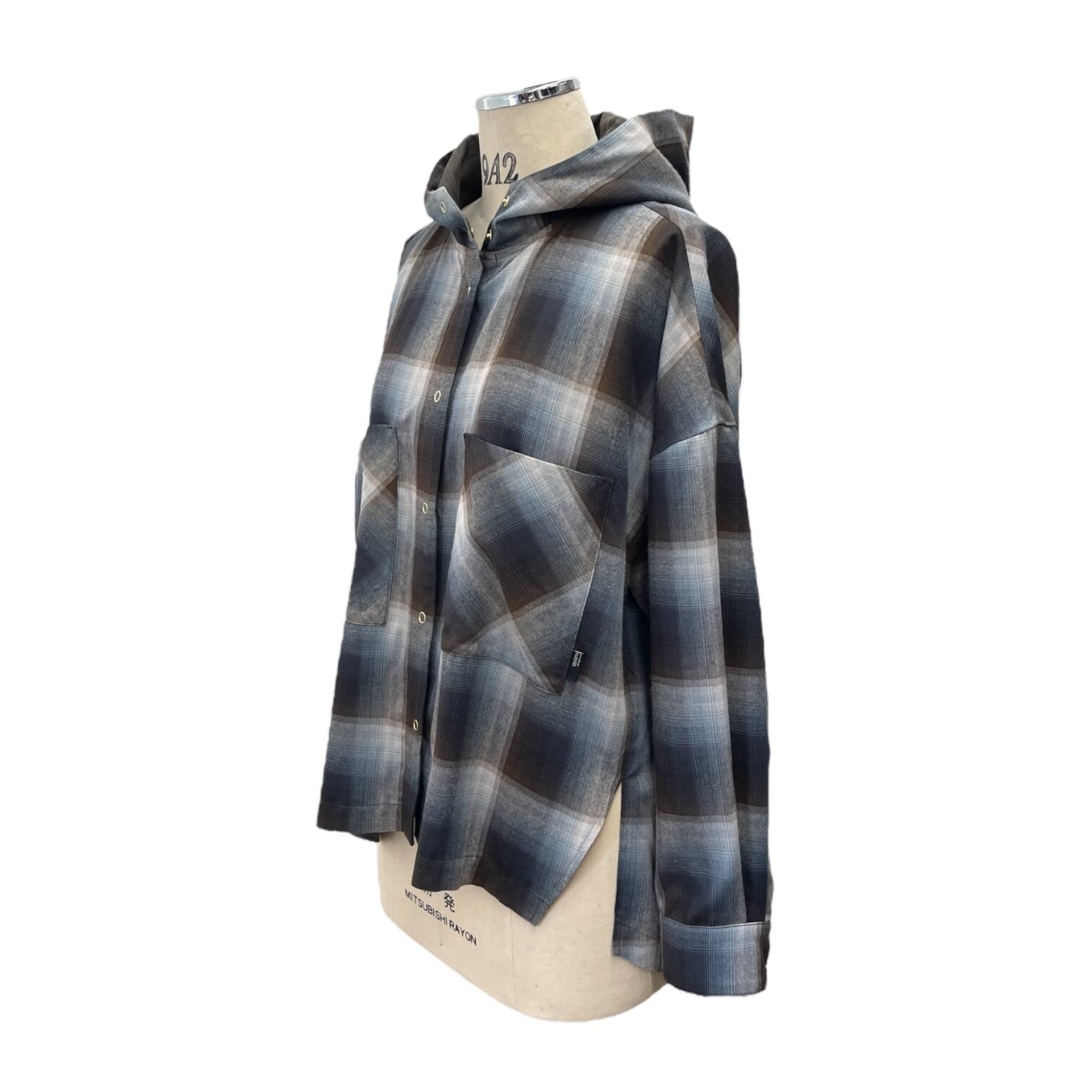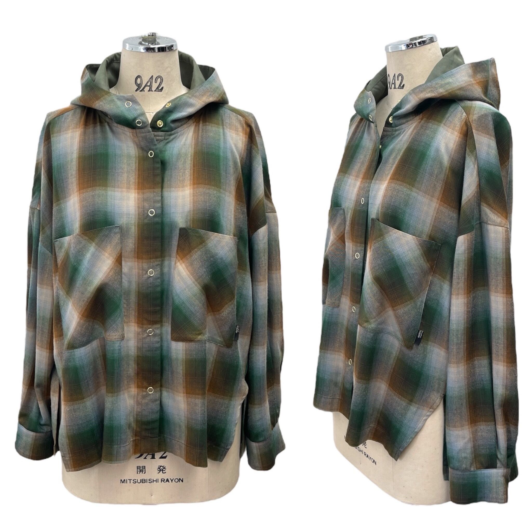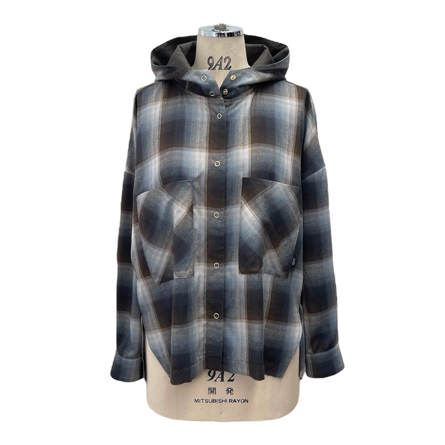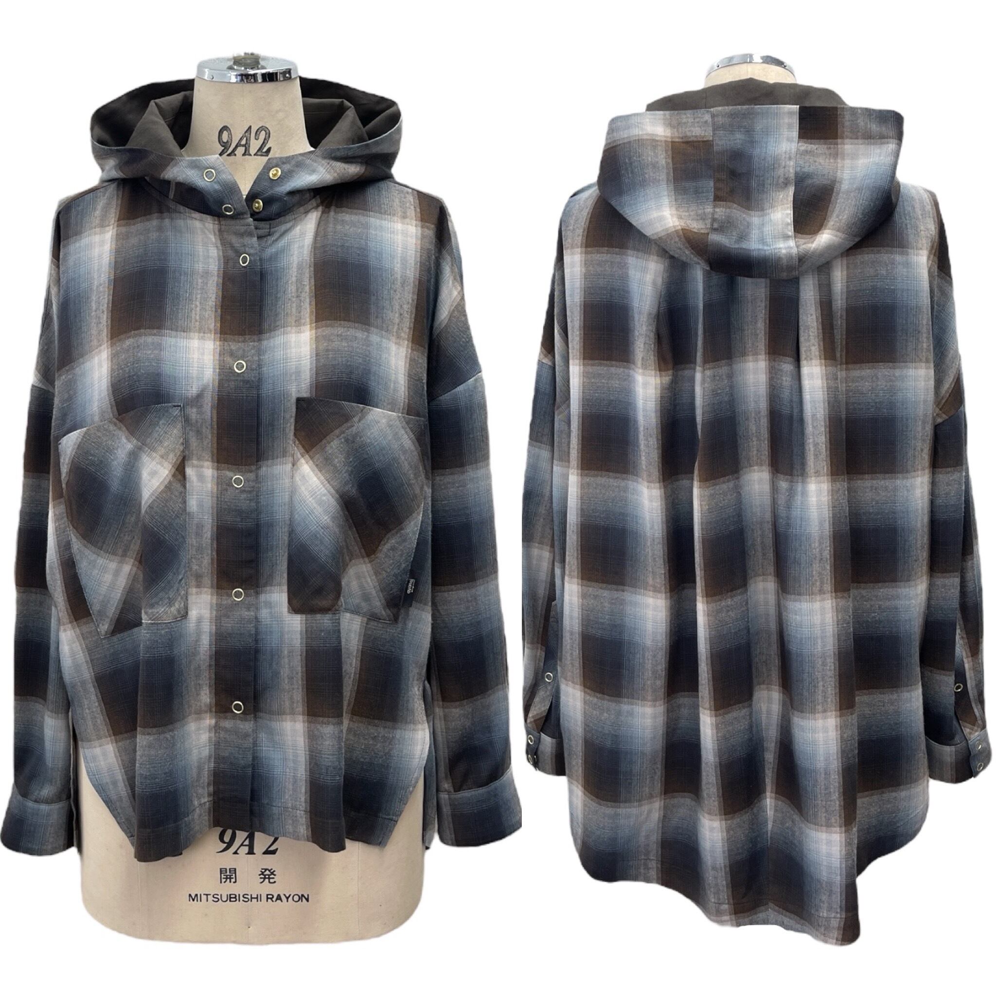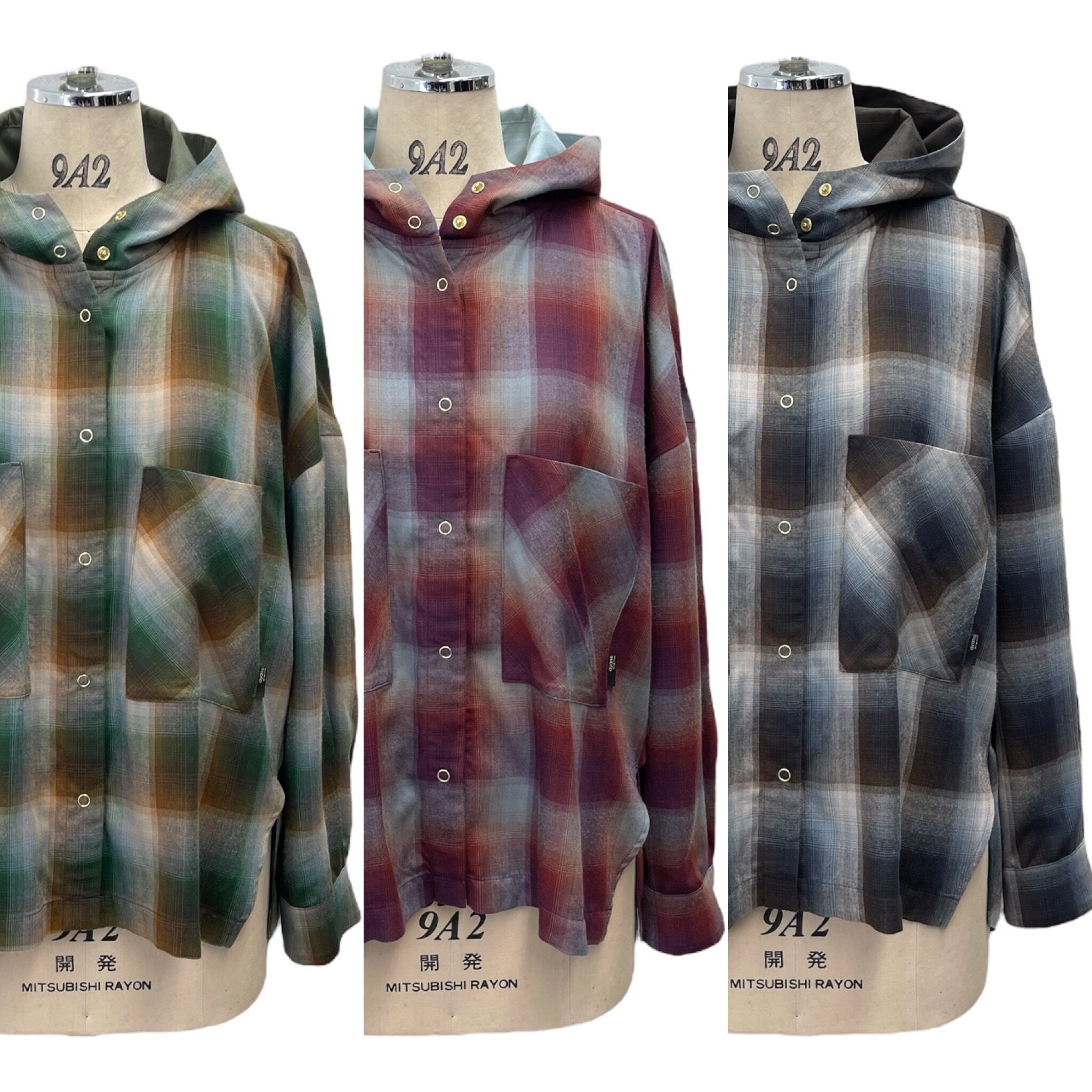 予約販売【 ayane 】オンブレーチェックフーディシャツ (854742) 8月末お届け