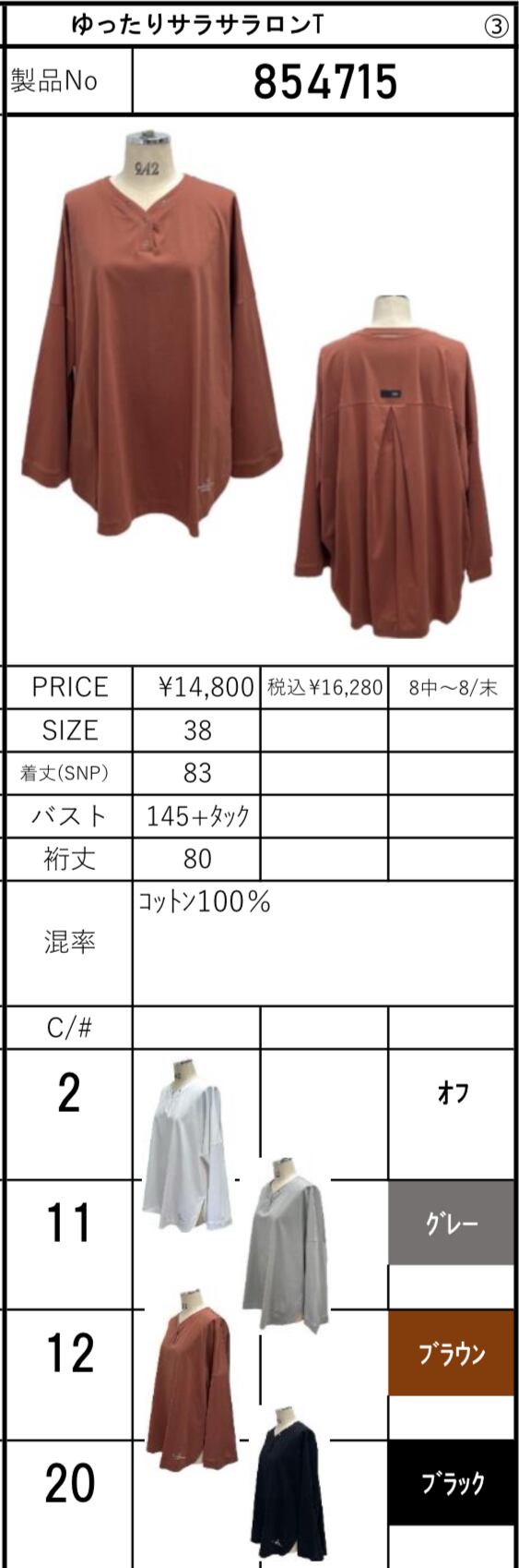 予約販売【 ayane 】ゆったりサラサラロンT (854715) 8月末お届け